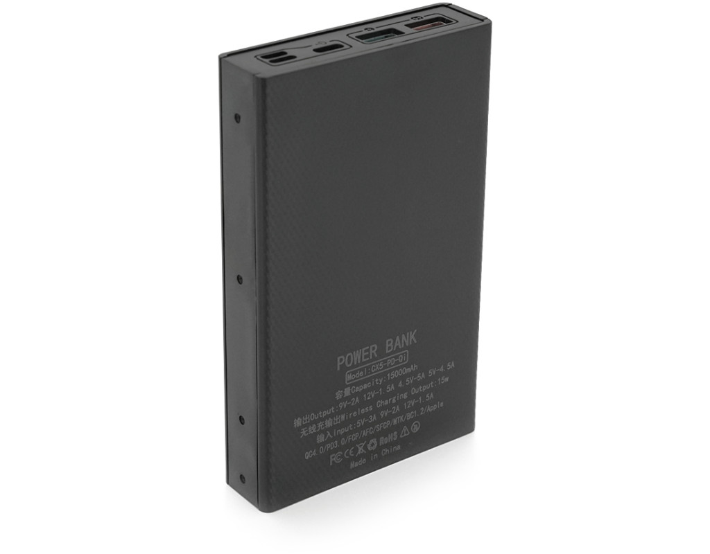 | Цей портативний зарядний пристрій виконаний у чорному кольорі із міцних ABS пластику та ПВХ. Він оснащений цифровим дисплеєм, що відображає рівень заряду. Характеристики: - Модель: Voltronic CX5-PD-QI - Тип акумулятора: 5 x 18650 (акумулятори не входять до комплекту) - Сумісність: - Micro-USB - USB Type-C - Lightning - Бездротова зарядка: Є (Wireless charger) - Максимальна вихідна потужність: 22.5 Вт - Місткість: Залежить від встановлених акумуляторів 18650 (не входять до комплекту) - Елементи живлення: 5x18650 (придбаються окремо) - Матеріал корпусу: ABS пластик, ПВХ - Колір чорний - Упаковка: Коробка Power bank Voltronic CX5-PD-QI – це надійне та функціональне джерело живлення для ваших пристроїв. Завдяки підтримці швидкого заряджання Power Delivery 22.5 Вт, він здатний заряджати смартфони, планшети та інші гаджети на максимальній швидкості. Вбудована бездротова зарядка дозволяє заряджати сумісні пристрої просто розмістивши їх на корпусі Power bank. Цифровий дисплей інформує про рівень заряду акумулятора, а міцний корпус із ABS пластику та ПВХ забезпечує довговічність. Зверніть увагу, що акумулятори типу 18650 купуються окремо. |