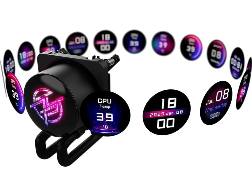 сокет - AM4, AM5, 1700, 1851, діаметр вентиляторів - 120 мм, Підсвічування - ARGB, матеріал радіатора - алюміній, Тип підшипників - підшипник ковзання з гвинтовою нарізкою (Rifle bearing), рівень шуму - 30 dB, роз'єми живлення - 4-pin, Обслуговування СРО - немає, чорний
