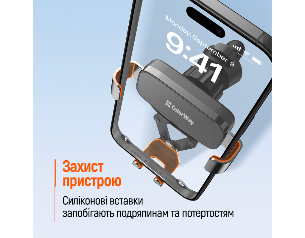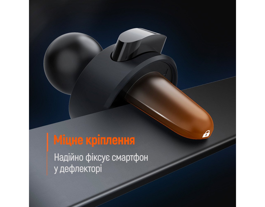 Міцна конструкція та продумані силіконові вставки на тримачах захищають корпус пристрою від подряпин і потертостей, а шарнірний механізм обертання на 360° дозволяє виставити оптимальний кут для навігації або відеодзвінків. Компактний і елегантний дизайн аксесуара не займає багато місця в салоні і не обмежує огляд дороги, при цьому дозволяє підключати зарядний кабель без зайвих труднощів. Цей автотримач поєднує в собі функціональність, зручність та стиль, роблячи користування смартфоном у автомобілі простим, безпечним і комфортним. Особливості Гравітаційне кріплення: надійна фіксація смартфона одним рухом Міцне кріплення: надійно фіксує смартфон у дефлекторі Захист пристрою: силіконові вставки запобігають подряпинам та потертостям 360° обертання: оптимальний кут огляду для навігації або відеодзвінків Широка сумісність: підтримує смартфони від 4 до 7 дюймів Проста і довговічна конструкція: надійний аксесуар для щоденного використання Легка установка: просто одним рухом Не заважає зарядці: смартфон можна заряджати прямо в тримачі |