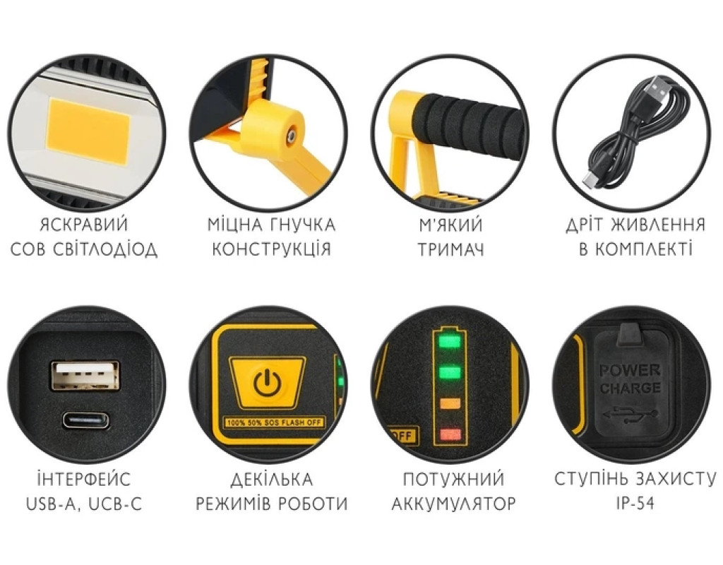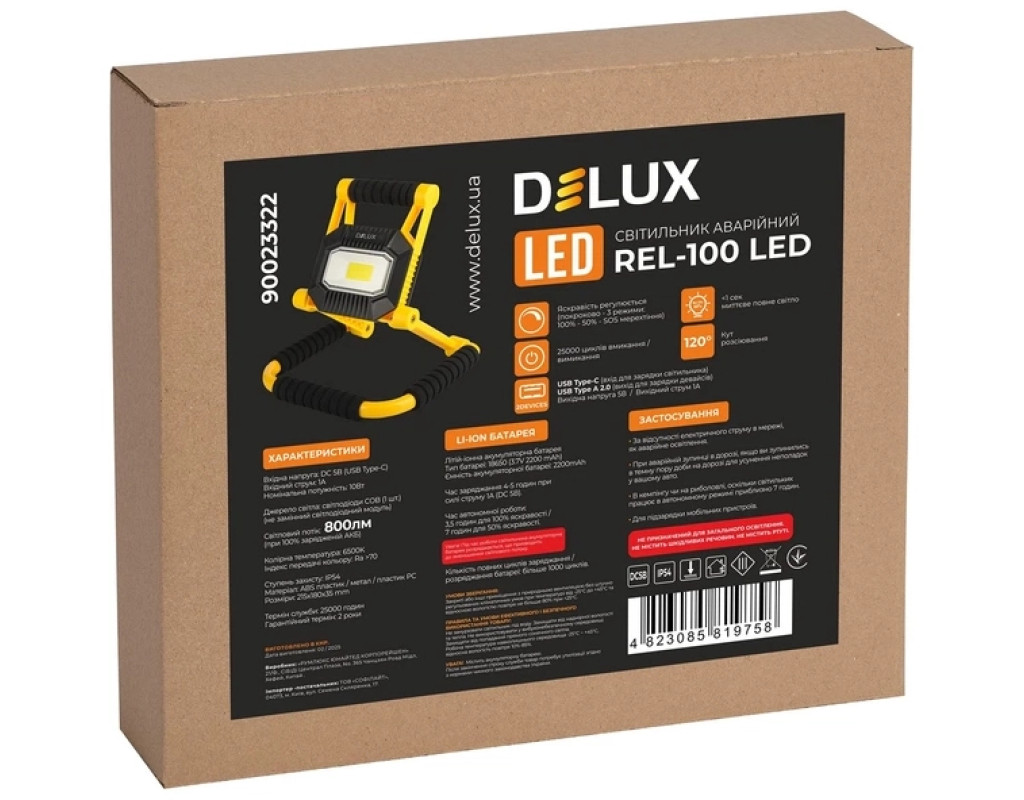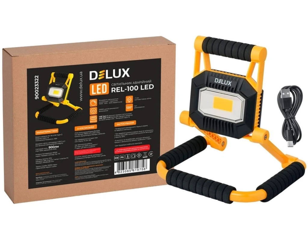 Прожектор Delux REL- 100 (3.7V 2200mAh) LED COB 10W 6500K IP54 (90023322)