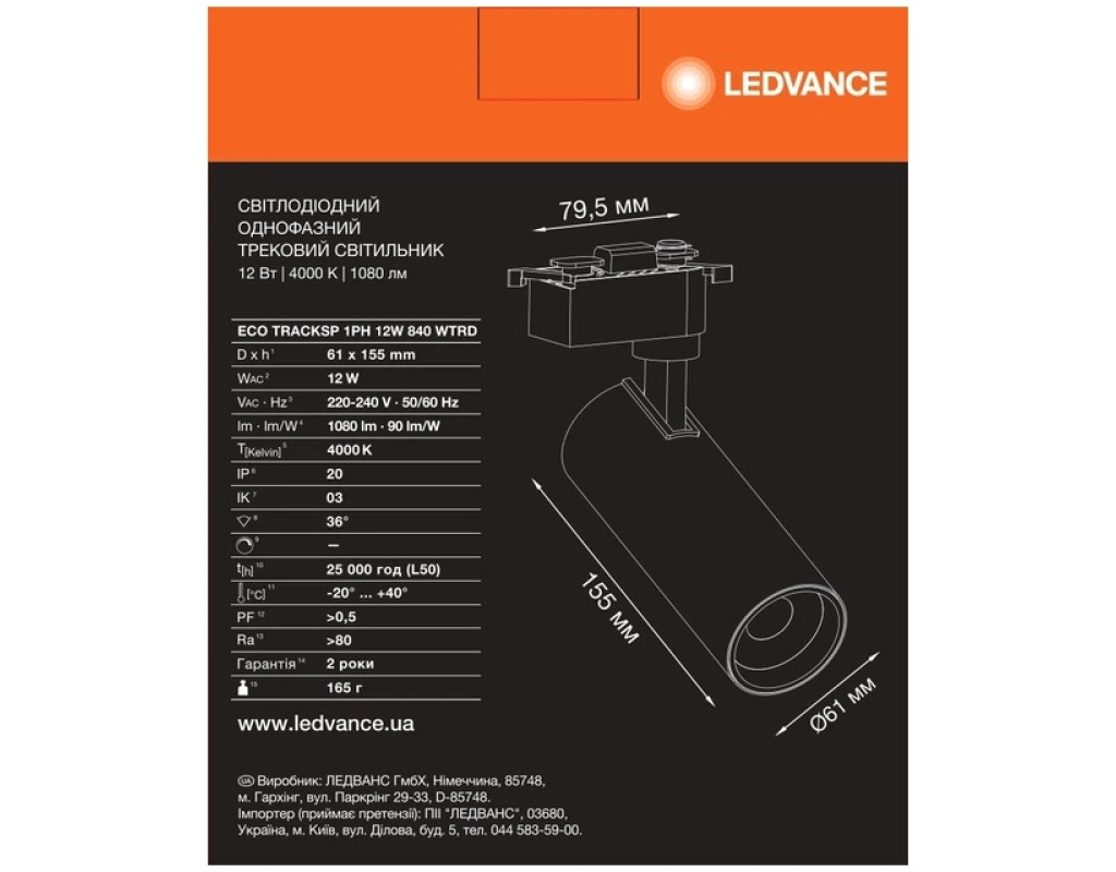 Прожектор LEDVANCE ECO TRACK SP 1 PH 12W 840 WTRD (4099854269424)