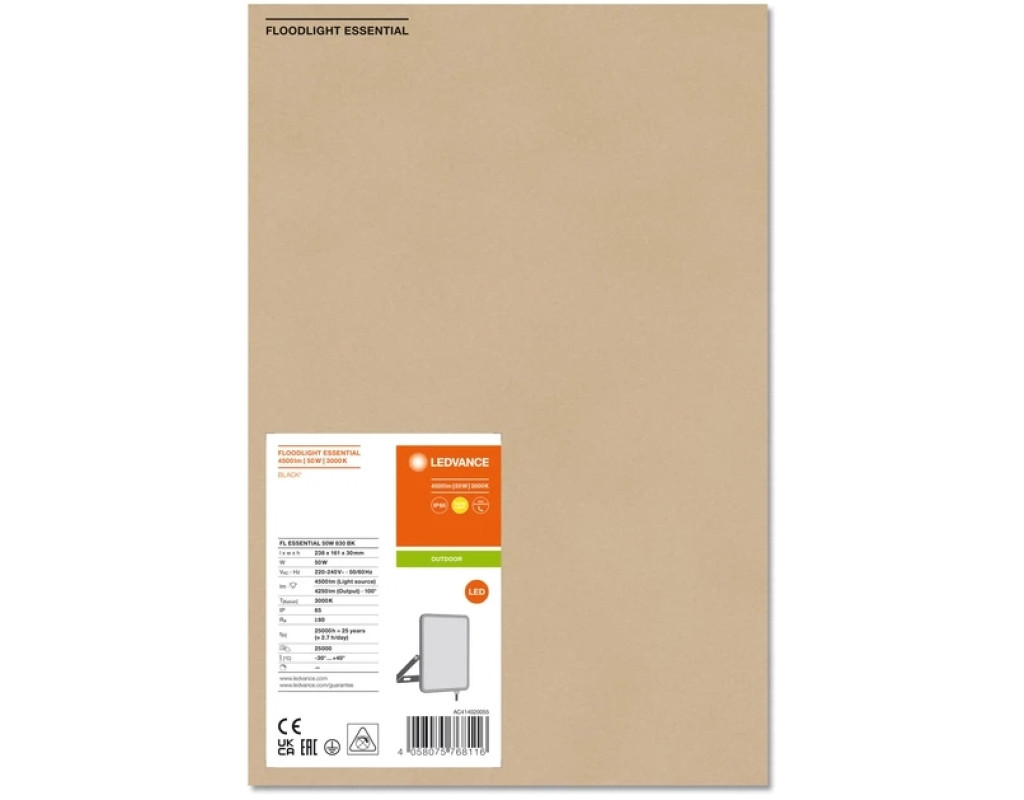 Світлодіодний прожектор LEDVANCE ESSENTIAL 50W 4500Lm 3000K - це надійне та ефективне освітлення, яке ідеально підходить для різних застосувань як усередині приміщень, так і на відкритому повітрі. Цей прожектор відрізняється високою енергоефективністю, довговічністю та якістю світла. Основні характеристики: