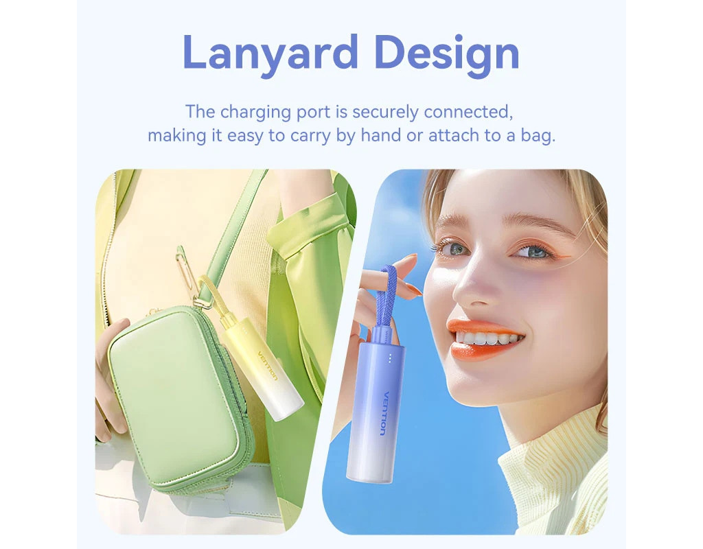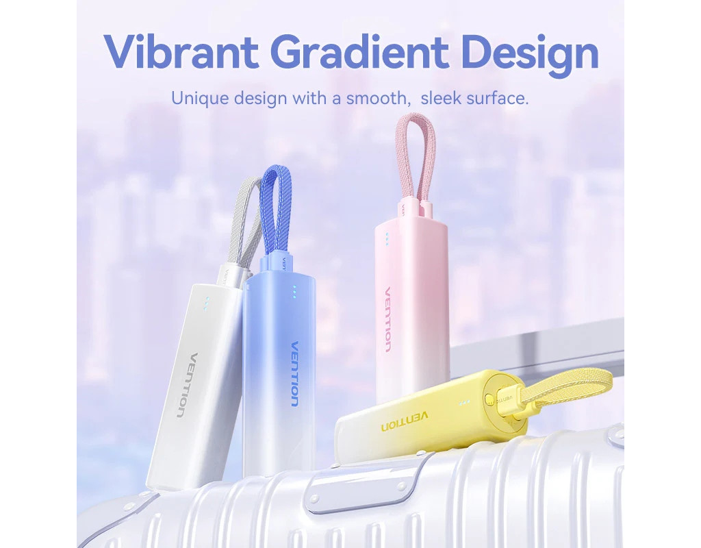 | УМБ Vention 5000mAh 20W PD, USB-C In/Out, Lightning In/Out, with cable, Gradient Yellow |