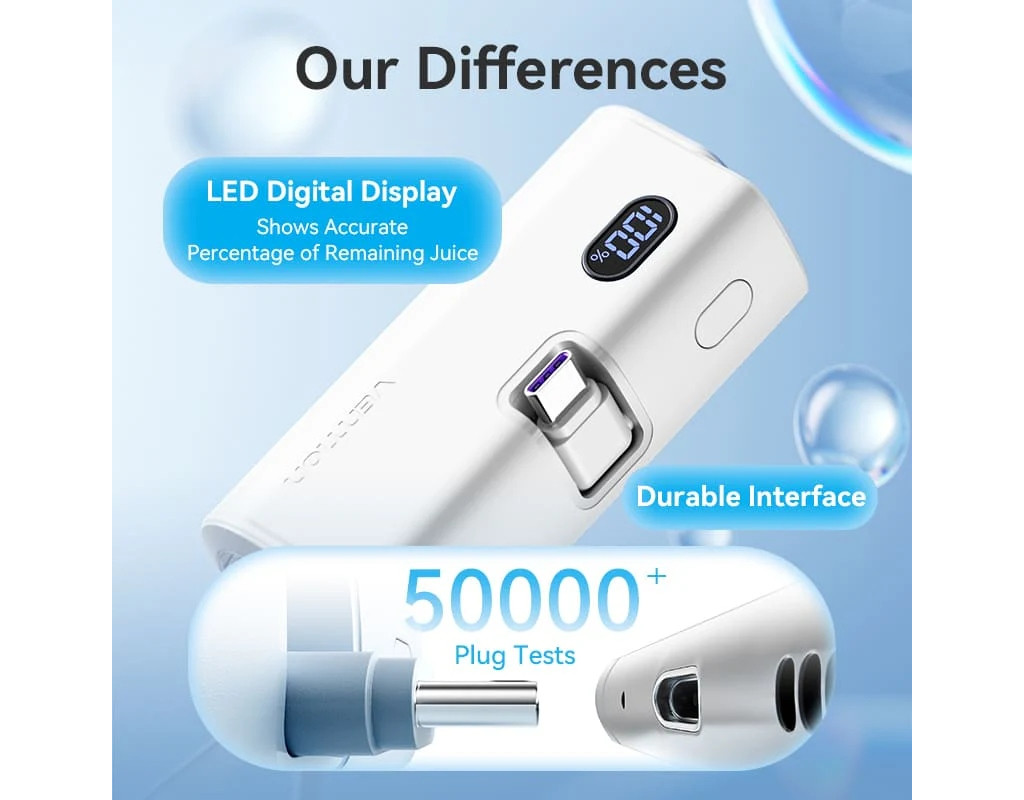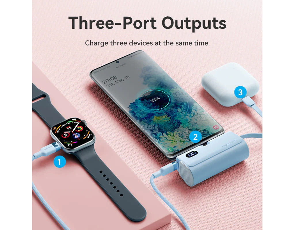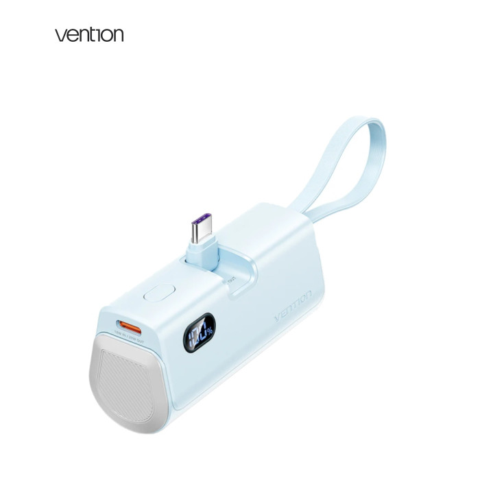 | УМБ Vention 4800mAh 22,5W PD, USB-C In/Out, LED display, with built-in USB-C cable Blue |