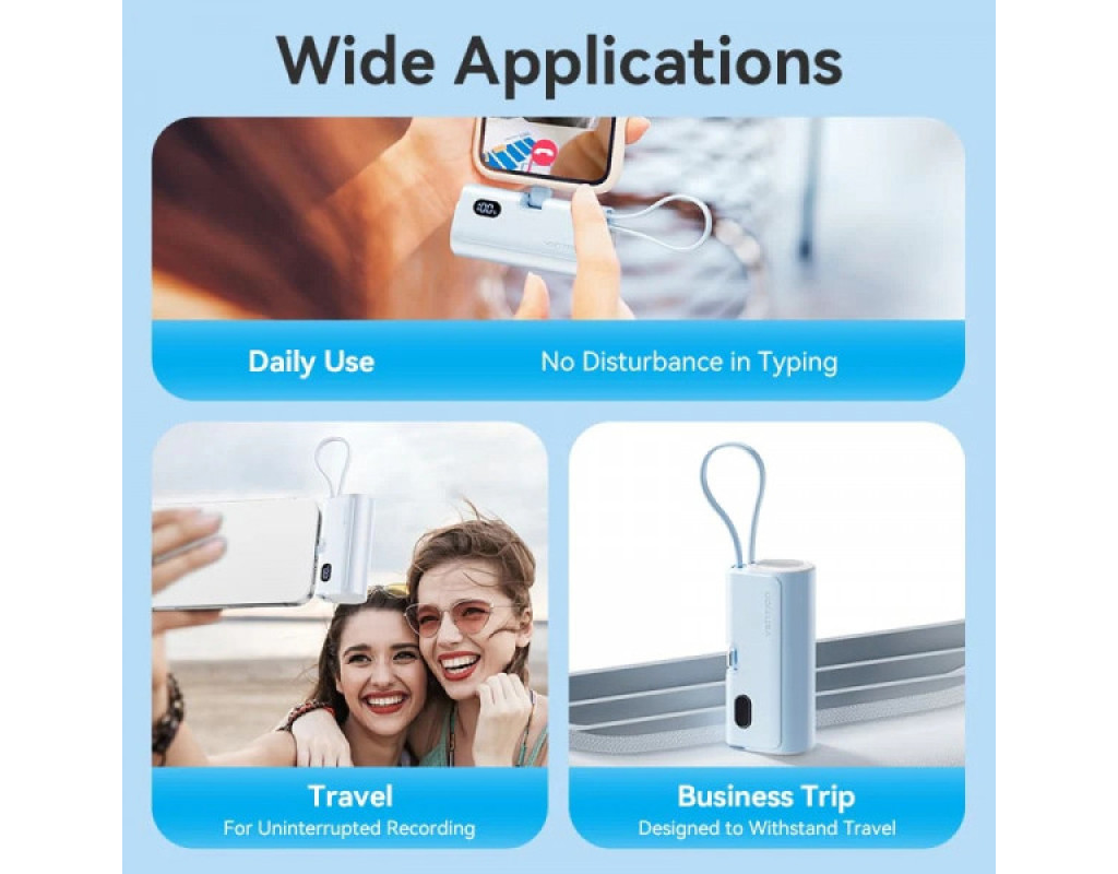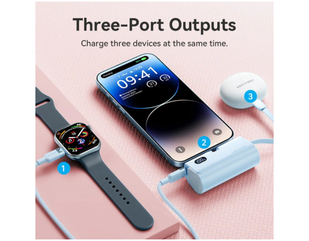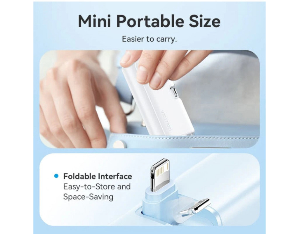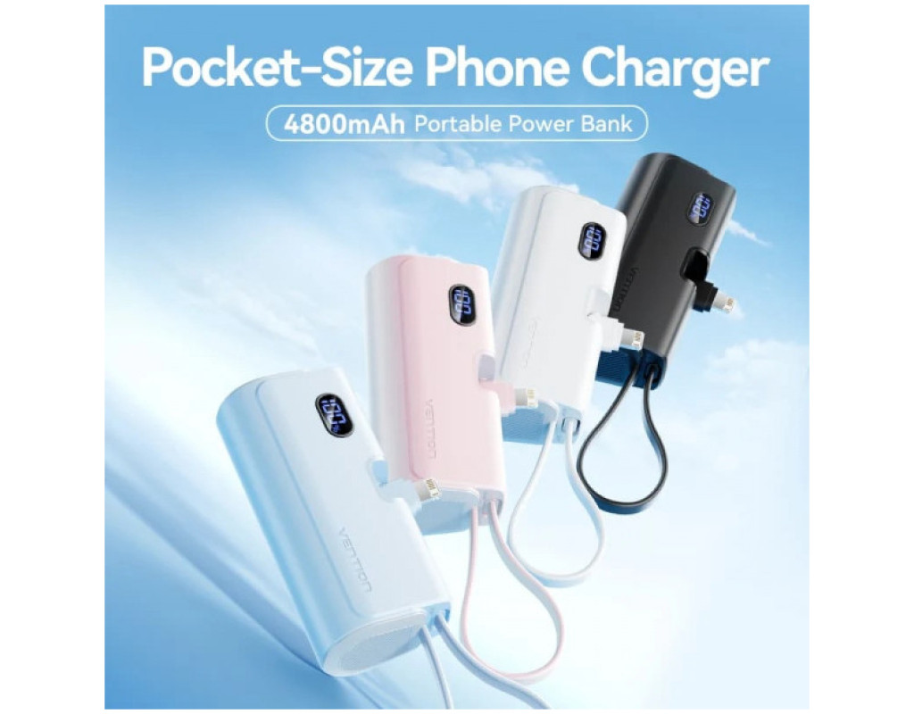 Компактна універсальна мобільна батарея ємністю 4800 мАг Vention 4800mAh 22,5W PD допоможе швидко та безпечно зарядити USB пристрої. Вона підтримує протокол швидкого заряджання PD 22,5 Вт. УМБ оснащена портом USB Type-С та двома кабелями – Lightning та USB Type-С. Вона підтримує одночасне заряджання декількох пристроїв. Порт USB Type-С працює з максимальною вихідною потужністю 20 Вт, та з потужністю до 18 Вт на вхід. Кабель Lightning зарядить підключені пристрої з потужністю до 12 Вт, а кабель USB Type-С – з максимальною потужністю 22,5 Вт. Вбудований LED дисплей сповіщатиме про поточний рівень заряду. Мініатюрний корпус УМБ Vention 4800mAh 22,5W PD розміром 81,8х38,4х30 мм та вагою 116 грам робить її зручною для зберігання та перенесення. |