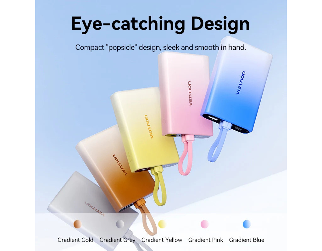 УМБ Vention 10000mAh 22,5W PD, USB-A, USB-C In/Out, Lightning In/Out, Blue