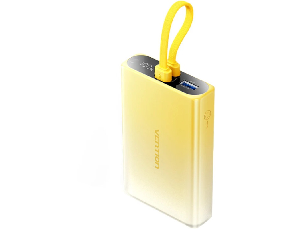 УМБ Vention 10000mAh 22,5W PD, USB-A, USB-C In/Out, Lightning In/Out, Yellow