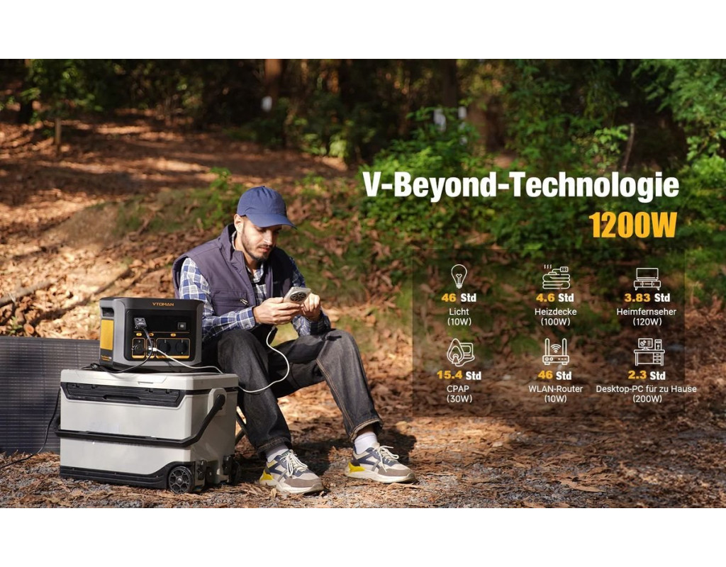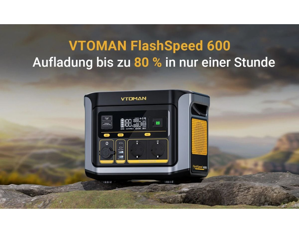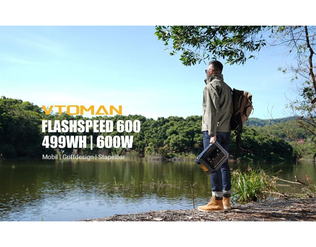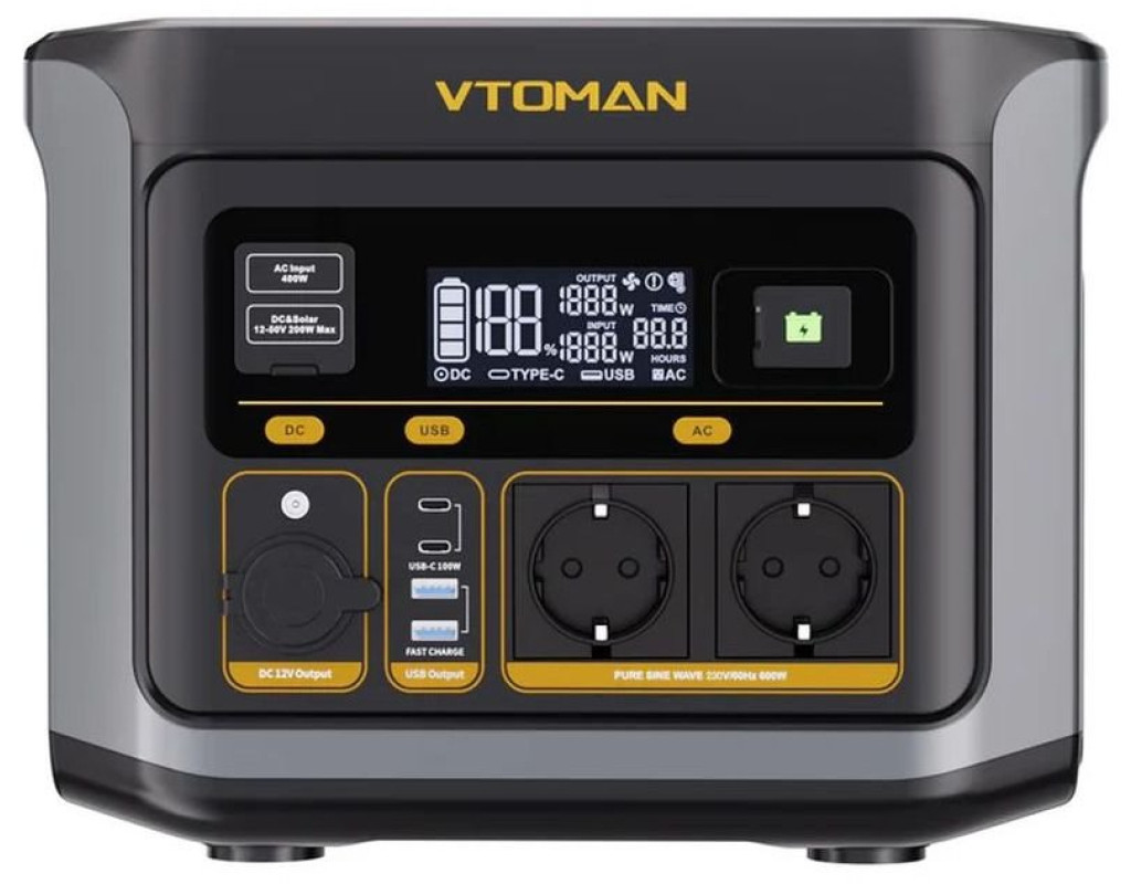 Висока потужність та ємність: VTOMAN FlashSpeed 600 має вихідну потужність 600 Вт і ємність 499 Вт·год, максимальну пікову потужність 1200 Вт, а також оснащений технологією V-Beyond.