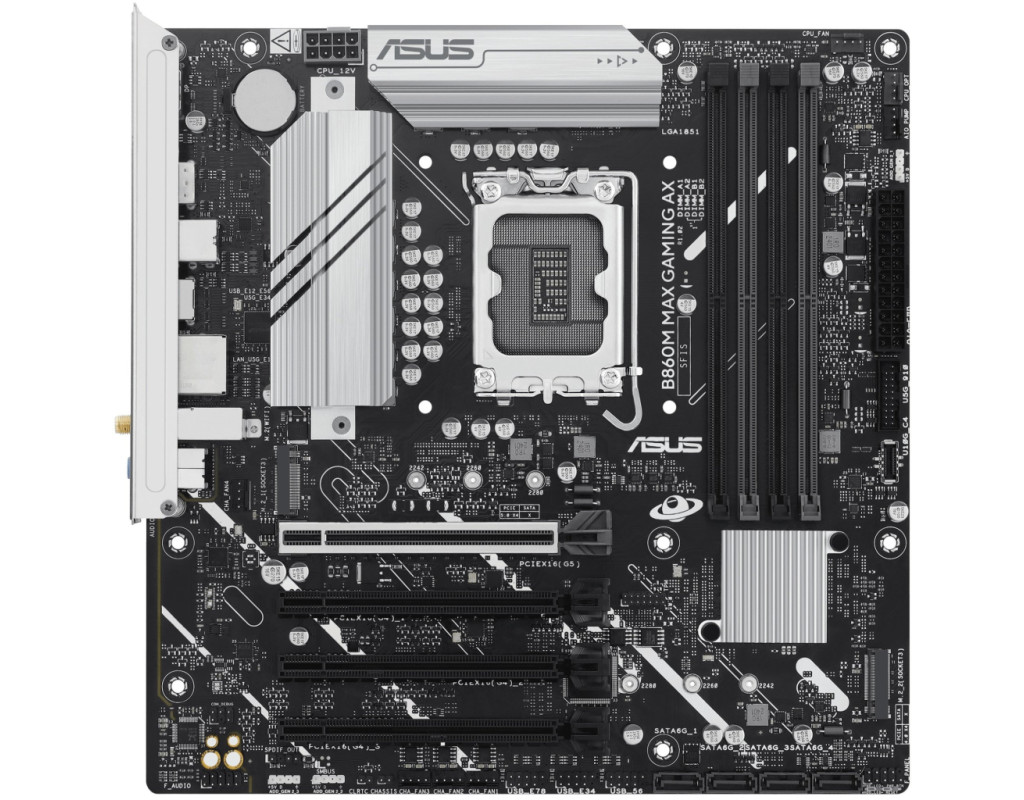 Материнські плати серії ASUS B860 створені, щоб розкрити весь потенціал новітніх процесорів Intel Core Ultra (Series 2). Завдяки надійному дизайну живлення, продуманим рішенням охолодження та інтелектуальним можливостям налаштування, плата B860M MAX GAMING AX надає користувачам і ентузіастам складання ПК широкий спектр оптимізацій продуктивності через інтуїтивне програмне забезпечення та функції прошивки. Вона розроблена як готова платформа для Advanced AI PC, забезпечуючи необхідну потужність та підключення для вимогливих AI-завдань.