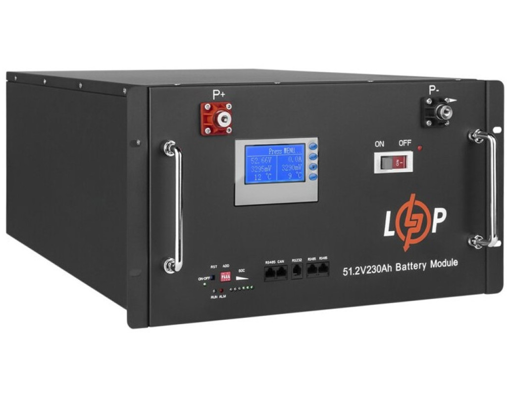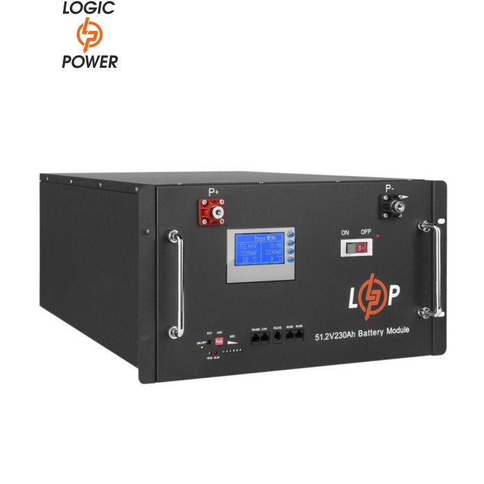 Батарея LiFePo4 LogicPower 48V (51.2V) - 230 Ah (11776Wh) (20331) - Акумулятори нового покоління LiFePO4 мають високий ККД (до 94%), низький саморозряд і широкий діапазон робочих температур (-20 ~ +60°C).