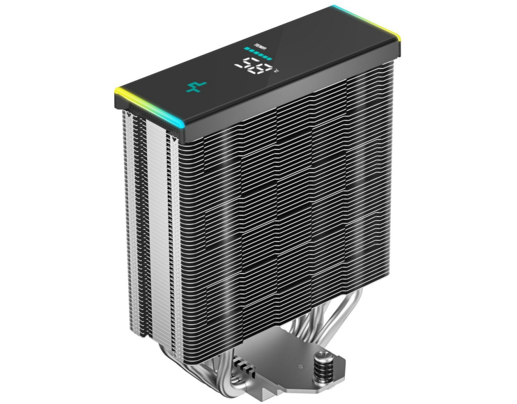 | DeepCool AK400 DIGITAL SE — це стильний баштовий кулер із вбудованим цифровим дисплеєм та ARGB-підсвічуванням, створений для продуктивних ігрових ПК та робочих станцій. Він поєднує перевірену ефективність серії AK400 з сучасним дизайном SE-версії: світлий металевий радіатор у поєднанні з чорними елементами виглядає свіжо й гармонійно у будь-якому корпусі. Версія DeepCool AK400 DIGITAL SE відрізняється від стандартної тим, що вона виконана у світлішому дизайні (чорно-білий стиль) — радіатор має класичний металевий відтінок алюмінію, а вентилятор та декоративні елементи залишаються темними, створюючи контрастний і більш універсальний вигляд. Основні характеристики: