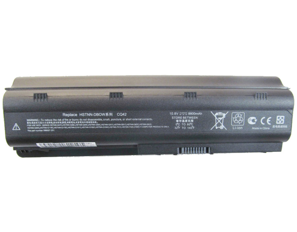 P/N сумісних акумуляторів 586006-121, 586006-141, 586006-241, 586006-321, 586006-361, 586006-541, 586006-741, 586006-761, 586007-001, 586007-121, 586007-141, 586007-251, 586007-421, 586007-541, 586007-851, 586028-321, 586028-341, 588178-141, 588178-541, 593550-001, 593553-001, 593554-001, 593555-001, 593561-001, 593562-001, 636631-001, 640320-001, H0F74AA#ABA, HSTNN-178C, HSTNN-179C, HSTNN-181C, HSTNN-CB0W, HSTNN-CB0X, HSTNN-CBOW, HSTNN-DB0W, HSTNN-DB0X, HSTNN-E06C, HSTNN-E07C, HSTNN-E08C, HSTNN-E09C, HSTNN-F01C, HSTNN-F02C, HSTNN-F03C, HSTNN-I78C, HSTNN-I79C, HSTNN-I81C, HSTNN-I83C, HSTNN-I84C, HSTNN-IB0N, HSTNN-IB0W, HSTNN-IB0X, HSTNN-IB1E, HSTNN-IB1F, HSTNN-IB1G, HSTNN-IBOW, HSTNN-LB0W, HSTNN-LB0X, HSTNN-LB0y, HSTNN-LB10, HSTNN-OB0X, HSTNN-OB0Y, HSTNN-Q47C, HSTNN-Q48, HSTNN-Q48C, HSTNN-Q49C, HSTNN-Q50C, HSTNN-Q51C, HSTNN-Q60C, HSTNN-Q61C, HSTNN-Q62C, HSTNN-Q63C, HSTNN-Q64C, HSTNN-Q66C, HSTNN-Q68C, HSTNN-Q72C, HSTNN-Q73C, HSTNN-UB0W, HSTNN-UB0X, HSTNN-UB1E, HSTNN-UB1G, HSTNN-XB0W, HSTNN-XB0X, HSTNN-XB0Y, HSTNN-XB1E, HSTNN-YB0W, HSTN
