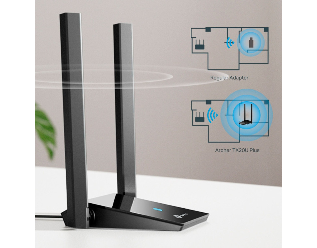 | TP-Link Archer TX20U Plus - бездротовий USB-адаптер із високим коефіцієнтом підсилення.