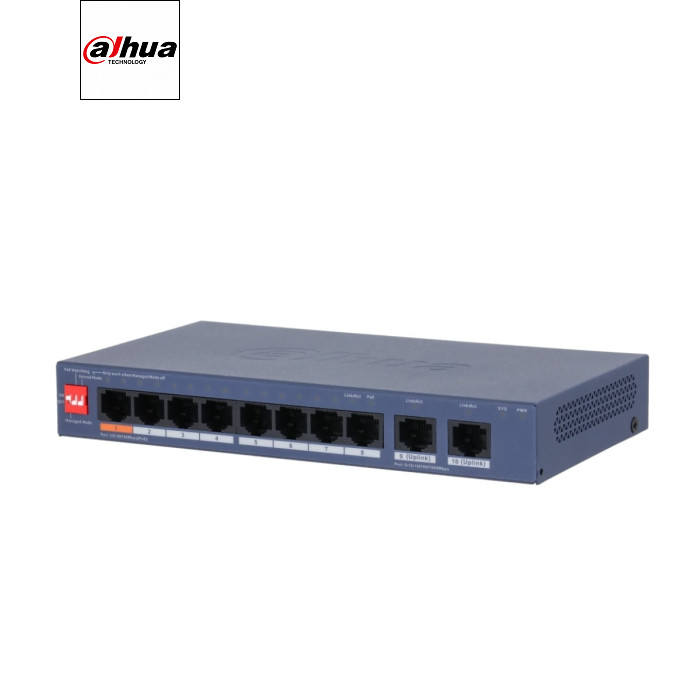 | 8-портовий керований комутатор з PoE DH-CS4010-8ET-60 призначений для забезпечення надійної та ефективної передачі даних із підтримкою PoE для живлення підключених пристроїв. Він має 8 Downlink портів RJ45 (10/100 Мбіт/с) із підтримкою PoE, а також 2 Uplink порту RJ45 (10/100/1000 Мбіт/с).