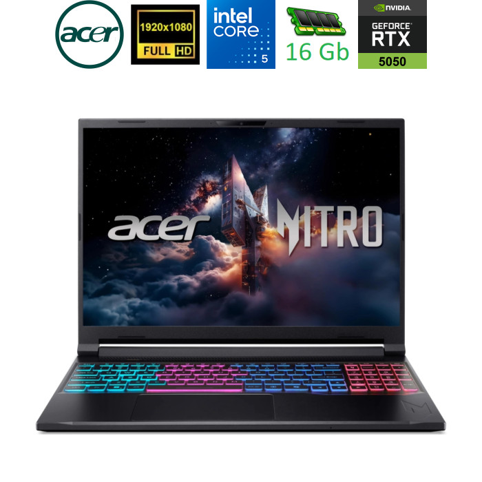 Acer Nitro V 16S — це потужний ігровий ноутбук, створений для геймерів і творців контенту, які прагнуть поєднання високої продуктивності, мобільності та передових технологій. Оснащений сучасними компонентами, він забезпечує неймовірну швидкодію та підтримку інноваційних функцій у тонкому корпусі. Цей пристрій ідеально підходить для тих, хто шукає баланс між ігровими можливостями та портативністю. 16-дюймовий дисплей зі співвідношенням сторін 16:10 пропонує роздільну здатність WUXGA, що забезпечує чітке та деталізоване зображення. Завдяки частоті оновлення 180 Гц і матриці IPS, екран гарантує плавне відображення динамічних сцен і широкі кути огляду, що особливо важливо для ігор і роботи з мультимедіа. 100% охоплення sRGB забезпечує яскраві та точні кольори, що робить ноутбук ідеальним для створення контенту. Продуктивність ноутбука вражає завдяки процесору Intel Core 5 210H. У поєднанні з оперативною пам’яттю DDR5, яка пропонує високу швидкість і енергоефективність, та SSD-накопичувачем, цей пристрій забезпечує швидке завантаження ігор і програм, а також плавну роботу в багатозадачному режимі. Графічний процесор NVIDIA GeForce RTX 5050 підтримує DLSS 4, що використовує штучний інтелект для підвищення частоти кадрів і якості зображення. Відеокарта забезпечує кінематографічну графіку та мінімальну затримку завдяки технології Reflex 2. Для забезпечення стабільної роботи під високими навантаженнями ноутбук оснащений вдосконаленою системою охолодження з двома вентиляторами та чотирма впускними й випускними отворами. Тонкий корпус, виготовлений із металевих верхньої та нижньої кришок, забезпечує портативність і міцність. З’єднання залишається швидким і надійним завдяки підтримці WiFi 802.11ax, Bluetooth і Gigabit Ethernet. Ноутбук також оснащений різними портами та слотом для microSD, що забезпечують гнучкість підключення. Клавіатура з чотирма зонами RGB-підсвічування та підтримкою NitroSense дозволяє налаштовувати систему в реальному часі, а такі функції, як Acer PurifiedView і PurifiedVoice 2.0, покращують якість відеодзвінків і запису звуку за допомогою ШІ. Acer Nitro V 16S — це ідеальний вибір для тих, хто шукає портативний і технологічний ноутбук. |