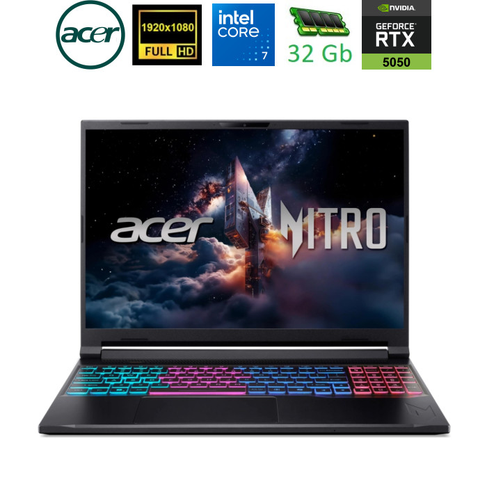 Acer Nitro V 16S — це потужний ігровий ноутбук, створений для геймерів і творців контенту, які прагнуть поєднання високої продуктивності, мобільності та передових технологій. Оснащений сучасними компонентами, він забезпечує неймовірну швидкодію та підтримку інноваційних функцій у тонкому корпусі. Цей пристрій ідеально підходить для тих, хто шукає баланс між ігровими можливостями та портативністю. 16-дюймовий дисплей зі співвідношенням сторін 16:10 пропонує роздільну здатність WUXGA, що забезпечує чітке та деталізоване зображення. Завдяки частоті оновлення 180 Гц і матриці IPS, екран гарантує плавне відображення динамічних сцен і широкі кути огляду, що особливо важливо для ігор і роботи з мультимедіа. 100% охоплення sRGB забезпечує яскраві та точні кольори, що робить ноутбук ідеальним для створення контенту. Продуктивність ноутбука вражає завдяки процесору Intel Core 7 240H. У поєднанні з оперативною пам’яттю DDR5, яка пропонує високу швидкість і енергоефективність, та SSD-накопичувачем, цей пристрій забезпечує швидке завантаження ігор і програм, а також плавну роботу в багатозадачному режимі. Графічний процесор NVIDIA GeForce RTX 5050 підтримує DLSS 4, що використовує штучний інтелект для підвищення частоти кадрів і якості зображення. Відеокарта забезпечує кінематографічну графіку та мінімальну затримку завдяки технології Reflex 2. Для забезпечення стабільної роботи під високими навантаженнями ноутбук оснащений вдосконаленою системою охолодження з двома вентиляторами та чотирма впускними й випускними отворами. Тонкий корпус, виготовлений із металевих верхньої та нижньої кришок, забезпечує портативність і міцність. З’єднання залишається швидким і надійним завдяки підтримці WiFi 802.11ax, Bluetooth і Gigabit Ethernet. Ноутбук також оснащений різними портами та слотом для microSD, що забезпечують гнучкість підключення. Клавіатура з чотирма зонами RGB-підсвічування та підтримкою NitroSense дозволяє налаштовувати систему в реальному часі, а такі функції, як Acer PurifiedView і PurifiedVoice 2.0, покращують якість відеодзвінків і запису звуку за допомогою ШІ. Acer Nitro V 16S — це ідеальний вибір для тих, хто шукає портативний і технологічний ноутбук. |