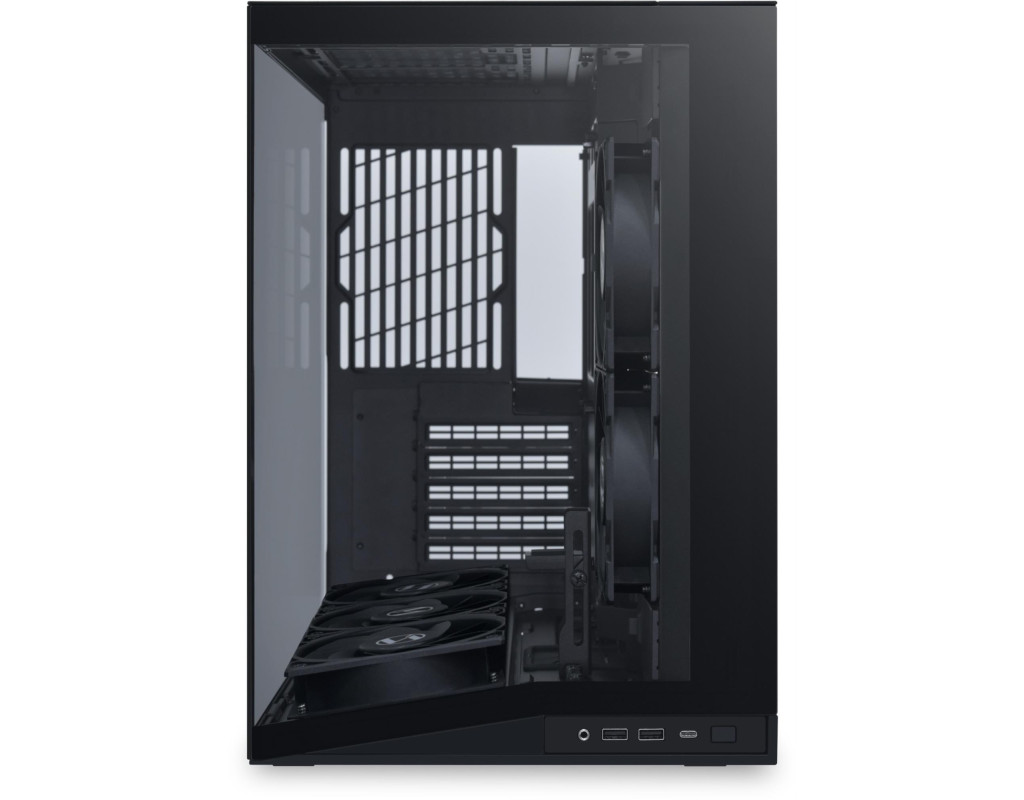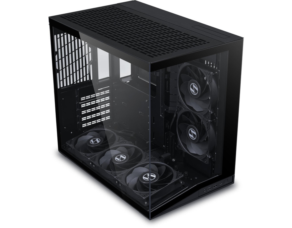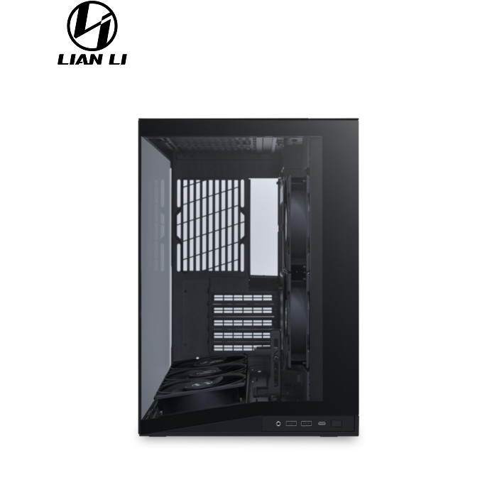 | Корпус Lian-Li O11 Dynamic Mini V2 Flow поєднує компактний розмір із розширеною підтримкою апаратного забезпечення. Безрамкові панелі з загартованого скла на передній і бічній сторонах забезпечують чистий огляд внутрішнього простору. Основа корпусу нахилена на 10°, що покращує потік повітря до відеокарти та додає естетичної привабливості.