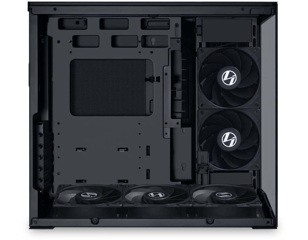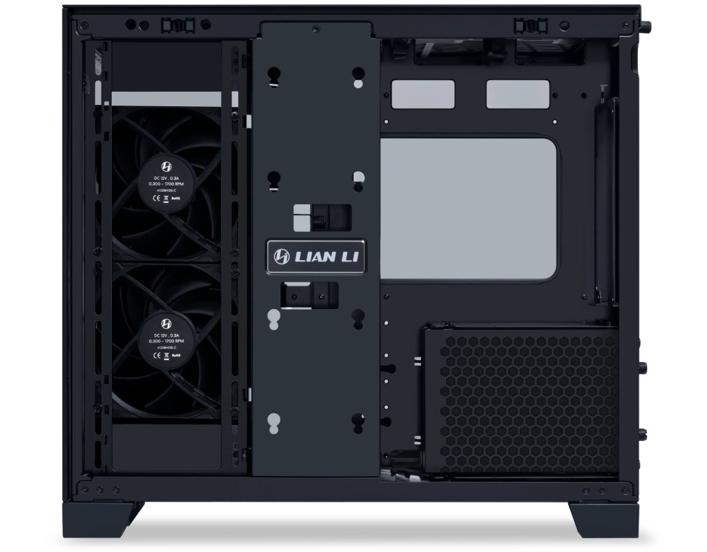 Корпус підтримує материнські плати форматів ATX, Micro-ATX, Mini-ITX, а також ATX Back-Connect для охайного керування кабелями. Він сумісний із відеокартами довжиною до 400 мм, процесорними кулерами висотою до 160 мм і блоками живлення ATX довжиною до 200 мм. Корпус дозволяє встановити радіатор до 360 мм у верхній частині, до 240 мм збоку та до дев’яти 120-мм вентиляторів. У версії Flow встановлено п’ять вентиляторів із реверсивними лопатями: три знизу та два збоку, що забезпечують потужний і тихий повітряний потік. Тестування показало, що за однакового рівня шуму O11D Mini V2 Flow забезпечує на 3,1°C кращу температуру відеокарти порівняно з LANCOOL 207, що становить приблизно 6% покращення охолодження GPU. Корпус оснащений регульованими стійками для материнської плати, що дозволяють змінювати положення Micro-ATX для сумісності з радіаторами 280 мм, 360 мм або товстішими 240 мм. Знімний верхній кронштейн для вентиляторів або радіаторів спрощує встановлення та прокладання кабелів, а вбудовані сітчасті фільтри на верхній і правій панелях забезпечують захист від пилу без додаткового монтажу. Нижній пиловий фільтр легко знімається для очищення. Модуль введення-виведення можна розмістити зверху або знизу для гнучкості в компонуванні. Переміщення нижнього модуля введення-виведення наверх і знімна нижня кришка покращують приплив повітря знизу та полегшують транспортування. Корпус містить регульований вертикальний кронштейн для відеокарти та вбудований кронштейн для 24-пінового кабелю живлення, що забезпечує надійну фіксацію та охайний вигляд. |
