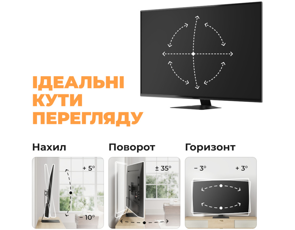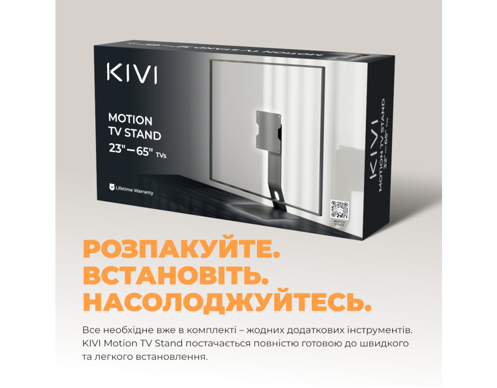 KIVI Motion Stand — ідеальний вибір для тих, хто цінує комфорт, гнучкість налаштувань і акуратний вигляд свого телевізора. |