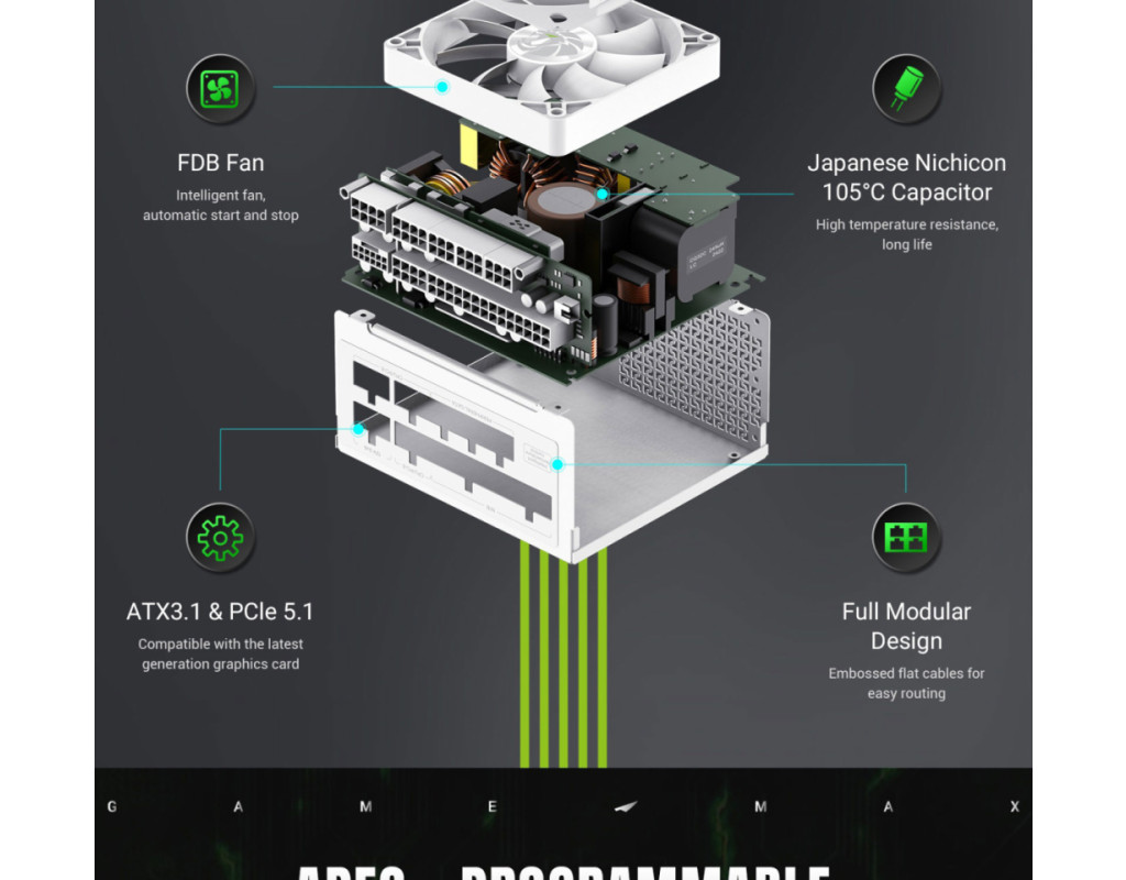 | GS 650G WH V25 — це надійний та енергоефективний SFX-блок живлення потужністю 650 Вт, розроблений для сучасних компактних ПК і продуктивних систем у білому виконанні. Він поєднує високий ККД, преміальні компоненти та інтелектуальне охолодження, забезпечуючи стабільну роботу навіть під високим навантаженням. Сертифікація 80 Plus Gold Висока енергоефективність гарантує стабільне живлення компонентів, менше тепловиділення та зниження ризику збоїв системи. Японські конденсатори преміумкласу Електролітичні та твердотільні конденсатори з робочою температурою до 105°C забезпечують тривалий термін служби та надійну роботу. Інтелектуальне керування вентилятором 9,2 см вентилятор з гідравлічним підшипником і PWM-контролем автоматично вмикається та вимикається залежно від навантаження (понад / менше 20%), оптимізуючи баланс між охолодженням і рівнем шуму. Покращена конструкція вихідних контактів Позолочені піни та мідні контакти високої щільності забезпечують стабільну передачу енергії та ефективне відведення тепла. Комплексний захист системи Повний набір захисних механізмів (OPP, OVP, UVP, OCP, SCP, OTP) надійно оберігає ПК та його компоненти від перевантажень і пошкоджень. GS 650G WH V25 — ідеальний вибір для компактних ігрових та робочих збірок, де важливі тиша, ефективність і максимальна надійність. |
