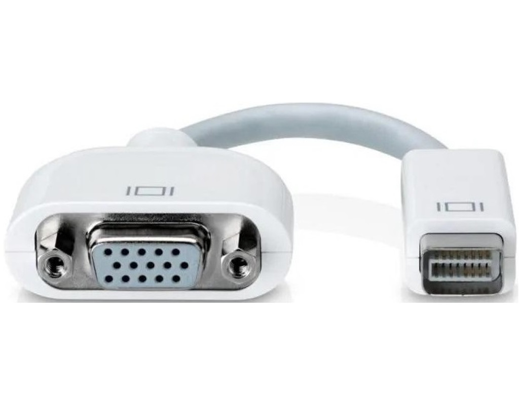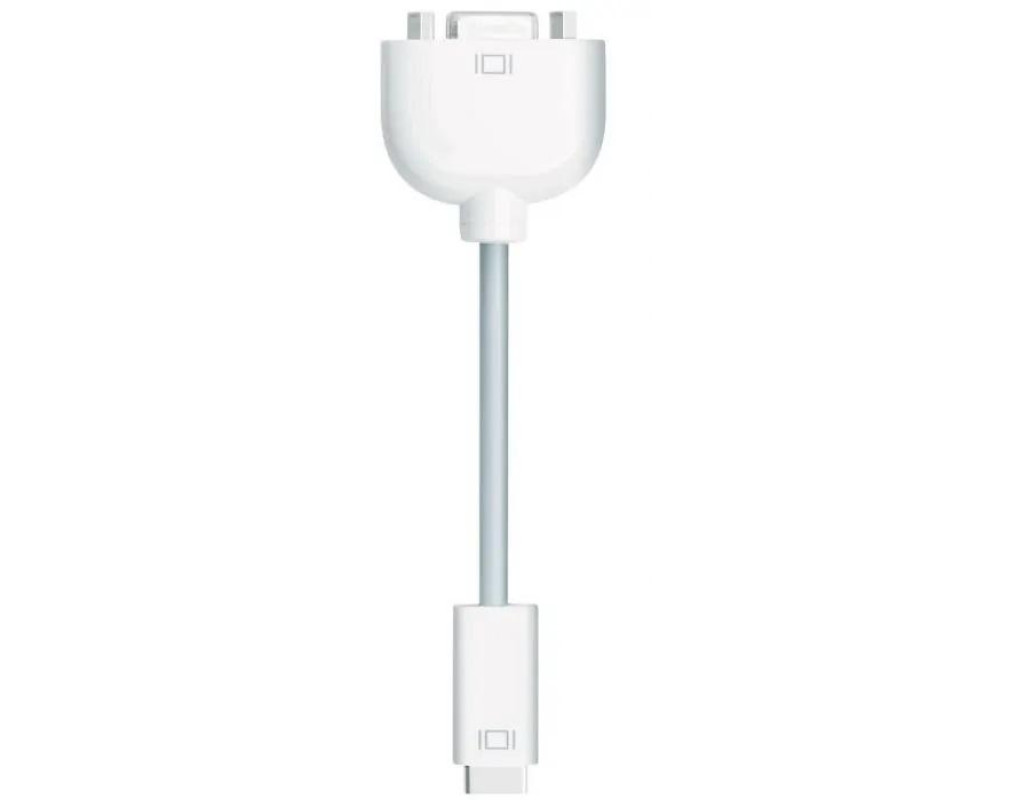 | Apple mini DVI to VGA Adapter (M9320G/A) – фірмовий адаптер Apple дозволяє синхронізувати будь-який комп’ютер Mac, за умови, що в ньому є Mini DVI порт, з широкоформатним монітором або проектором. Цей маленький аксесуар дозволить використовувати монітор із широкою роздільною здатністю як основний робочий стіл. Крім цього ви можете пристосувати цей перехідник як інструмент для відеоповтору, тобто, транслюючи відео через проектор, ви бачитимете те, що і ваші глядачі.