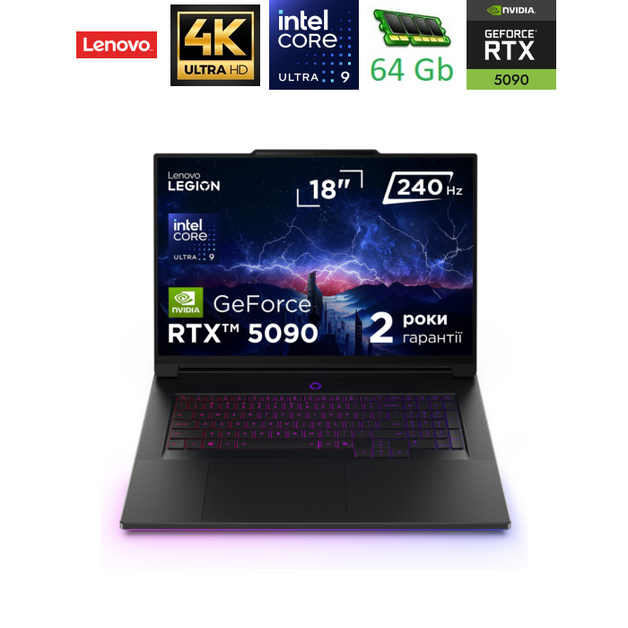 Ноутбук Lenovo Legion 9 18IAX10 — справжня знахідка для професіоналів. Він створений для геймдевелоперів, художників візуальних ефектів і 3D-фахівців, яким потрібен потужний, надійний і ефективний інструмент для щоденної роботи. Завдяки поєднанню ультрасучасних компонентів і виняткової розширюваності, цей пристрій дозволяє реалізувати найамбітніші проекти, зберігаючи високу продуктивність і стабільність у роботі. Захоплюючий візуальний світ Legion 9 Lenovo Legion 9 18IAX10 оснащений великим 18-дюймовим WQUXGA IPS дисплеєм з роздільною здатністю 3840x2400, HDR 400 і сертифікацією Low Blue Light для захисту очей. З GeForce RTX 5090, 24GB GDDR7 на борту, цей ноутбук дозволяє працювати з графікою на найвищих налаштуваннях, ефективно виконуючи рендеринг і реалістичні візуальні ефекти без затримок. Досконалість у деталях: корпус і дизайн Корпус ноутбука виконаний з передових матеріалів — унікального кованого карбону і міцного алюмінію. Система охолодження Legion Coldfront: Vapor гарантує ефективне відведення тепла навіть при виконанні найбільш ресурсоємних завдань. Також в корпус інтегровано 6 стереодинаміків: 4 вуфера для глибоких низьких частот і 2 твітери, оптимізовані за допомогою Nahimic Audio для відмінної об'ємності звуку. Порти розташовані так, щоб забезпечувати легкий доступ і порядок на робочому столі. Ви отримуєте пристрій, в якому є 2 порти USB-A 3.2 Gen 2, 2 порти Thunderbolt 5, HDMI 2.1 для підключення зовнішніх дисплеїв, а також Ethernet-порт на 2.5GbE для стабільного підключення до мережі. Однією з ключових деталей Lenovo Legion 9 18IAX10 є його революційна клавіатура, розроблена з урахуванням потреб професіоналів і геймерів. Вона має 6 рядів клавіш з додатковою цифровою клавіатурою і мультимедійними функціональними клавішами для швидкого доступу до ключових налаштувань. Глибина натискання клавіш становить 1,6 мм, що забезпечує приємну тактильну віддачу і знижує втому при тривалому використанні. Щоб підкреслити функціональність і стиль, клавіатура оснащена RGB-підсвічуванням. Створений для великих ідей Завдяки акумулятору ємністю 99,9 Вт*год, що підтримує технологію швидкої зарядки Super Rapid Charge, ноутбук забезпечує до 4 годин відтворення відео в режимі 1080p. Інноваційна технологія Wi-Fi 7 від Intel Killer забезпечує безперебійний, високошвидкісний доступ до Інтернету. Для безпеки даних в ноутбуці застосовується TPM 2.0, а вбудована камера підтримує 3D інфрачервоне розпізнавання з електронним затвором, забезпечуючи конфіденційність під час відеодзвінків. Всі ці компоненти роблять Lenovo Legion 9 18IAX10 ідеальним помічником у реалізації ваших професійних амбіцій, який не тільки дарує виняткові можливості для роботи, але й дбає про навколишнє середовище завдяки екологічно відповідальному виробництву. |