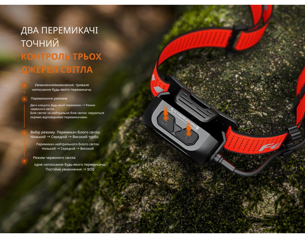Налобний ліхтар Fenix HP12R-T поєднує світло високої яскравості до 1300 люменів, точне налаштування світлового потоку та продуману конструкцію для комфортного використання у русі. Це професійна модель, розроблена для бігунів, трейлранерів, туристів, будівельників та фахівців, які працюють в умовах поганої видимості. Модель укомплектована 4 незалежними випромінювачами:
