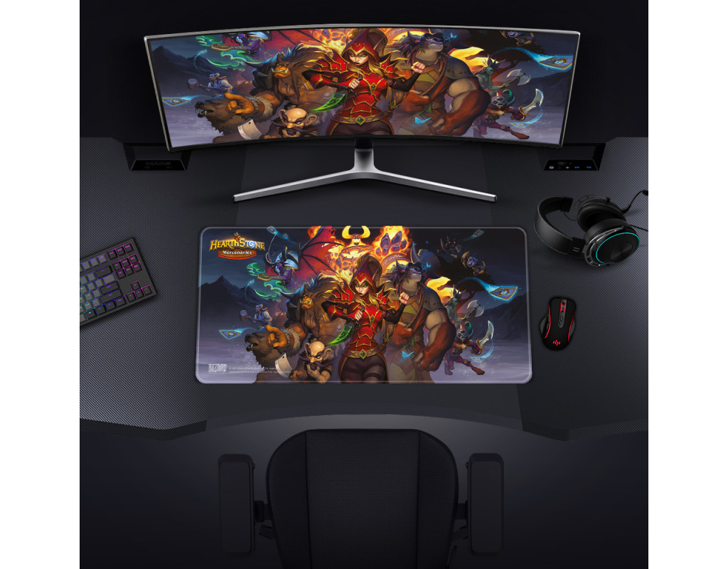 | Коврик для ігрової миші має вражаючий дизайн, натхненний найманцями популярної карткової гри Hearthstone. Килимок для миші демонструє ілюстрації кількох найманців із гри, кожен зі своєю унікальною бронею, зброєю та здібностями. Герої зображені в яскравих деталях, зі складним дизайном та сміливими кольорами, що ідеально передають химерний та фантастичний світ Hearthstone. Цей коврик для миші ідеально підходить для шанувальників Hearthstone, які шукають зручну та чутливу поверхню для покращення грового досвіду, а також демонструють свою любов до світу популярної карткової гри. Особливості продукту Розмір: 900 мм х 420 мм х 4 мм Поверхня: поверхня преміум-класу «Speed» забезпечує швидкі та точні рухи миші. Міцність: зносостійкі краї завдяки гладкому переливному шву. Водонепроникність: водовідштовхувальна поверхня додає додаткову кулю захисту. Основа: нековзна гумова основа забезпечує стабільність під час інтенсивних ігрових сесій. |