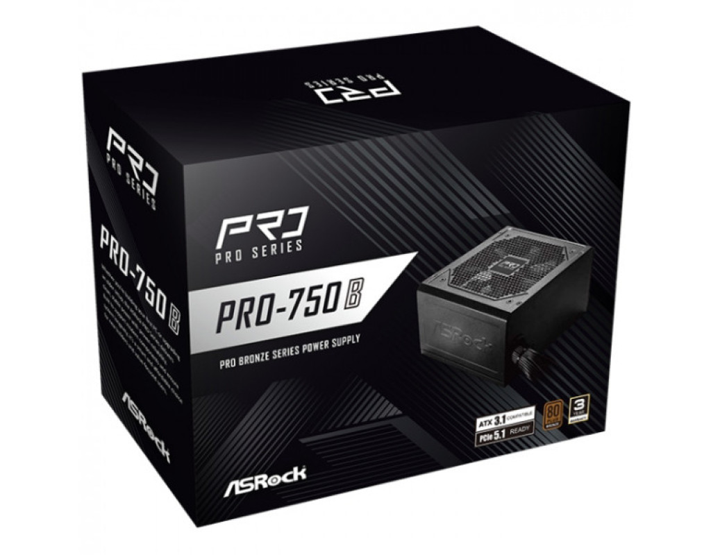 Офіційна сертифікація 80 PLUS Bronze підтверджує високий ККД пристрою (понад 85%) та гарантує енергоефективну роботу ASRock PRO PRO-750B. |