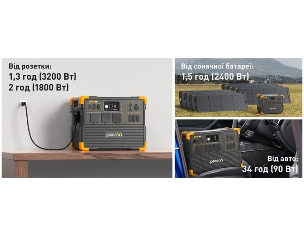 | Чому саме E3600LFP? Pecron E3600LFP має приголомшливу вихідну потужність 3600 Вт і надшвидке заряджання потужністю до 3200 Вт. Його можна використовувати як просто неба, так і вдома, а його компактний дизайн дуже зручний для транспортування. Ви можете використовувати дистанційне Wi-Fi керування електростанцією E3600LFP, навіть коли ви на роботі! 14 портів для одночасного живлення 3 євро-розетки змінного струму. 4 порти USB-A. 2 порти USB-C 100 Вт. Вихід 12 В XT60-F. Вихід 12 В DC 5525. Порт автоприкурювача. 2 Бездротові зарядки. Стабільна робота для 99 % техніки Попрощайтесь з тривогою за акумулятор і насолоджуйтесь безтурботною роботою пристроїв! Аварійне резервне живлення Підготуйтесь до відключень електроенергії, щоб жити та працювати без перешкод. Керування живленням з додатку Дистанційний вимикач. Функція ДБЖ Швидко та безперебійно. Перемикання джерела живлення до 20 мс. Стабільне та надійне живлення Вбудований BMS гарантує безпеку користувача під час використання та забезпечує стабільну та надійну підтримку живлення. Батарея тривалістю в 3500+ циклів заряджання (LIFEPO4) Зберігає 80 % початкової ємності після 3500 повних циклів заряджання. |