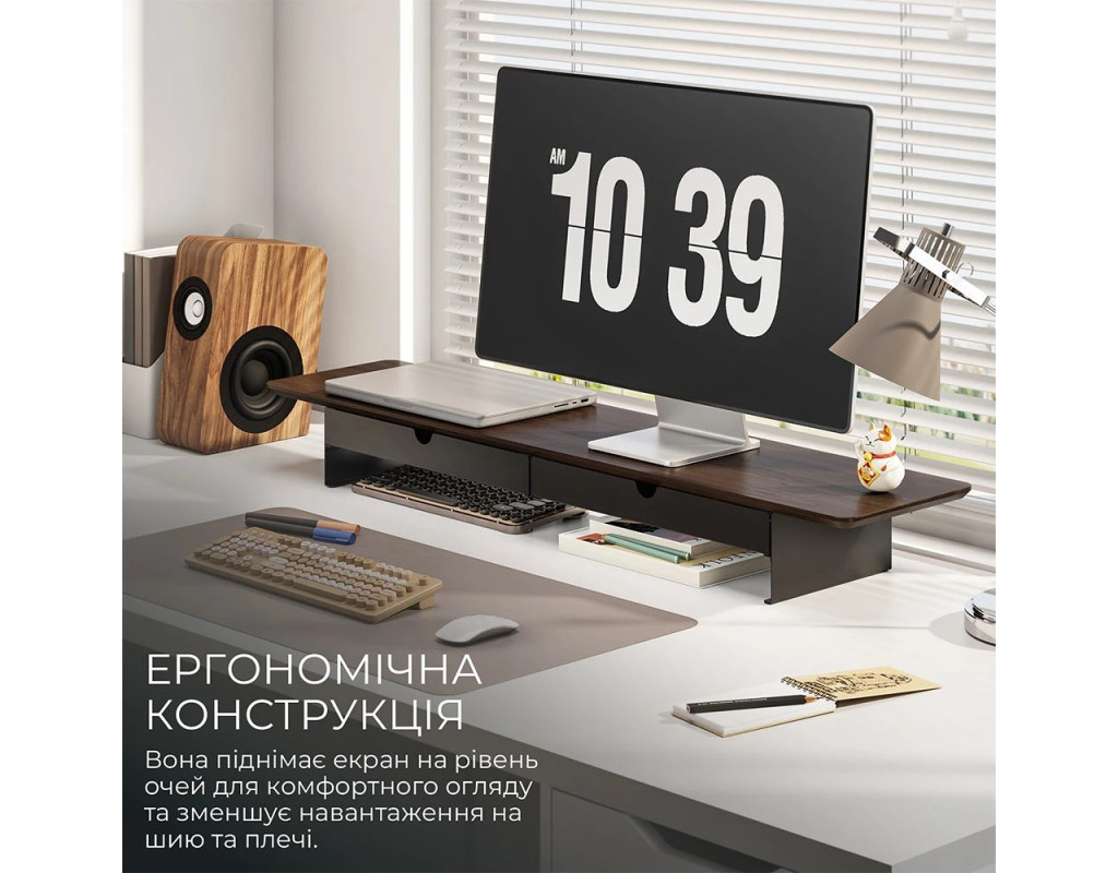 | Officepro MR164DW – це міцна та функціональна підставка для монітора, розроблена для покращення організації робочого простору та підвищення комфорту під час щоденної роботи. Завдяки ергономічному дизайну та вбудованим ящикам, вона стане незамінним аксесуаром як для домашнього кабінету, так і для офісу.