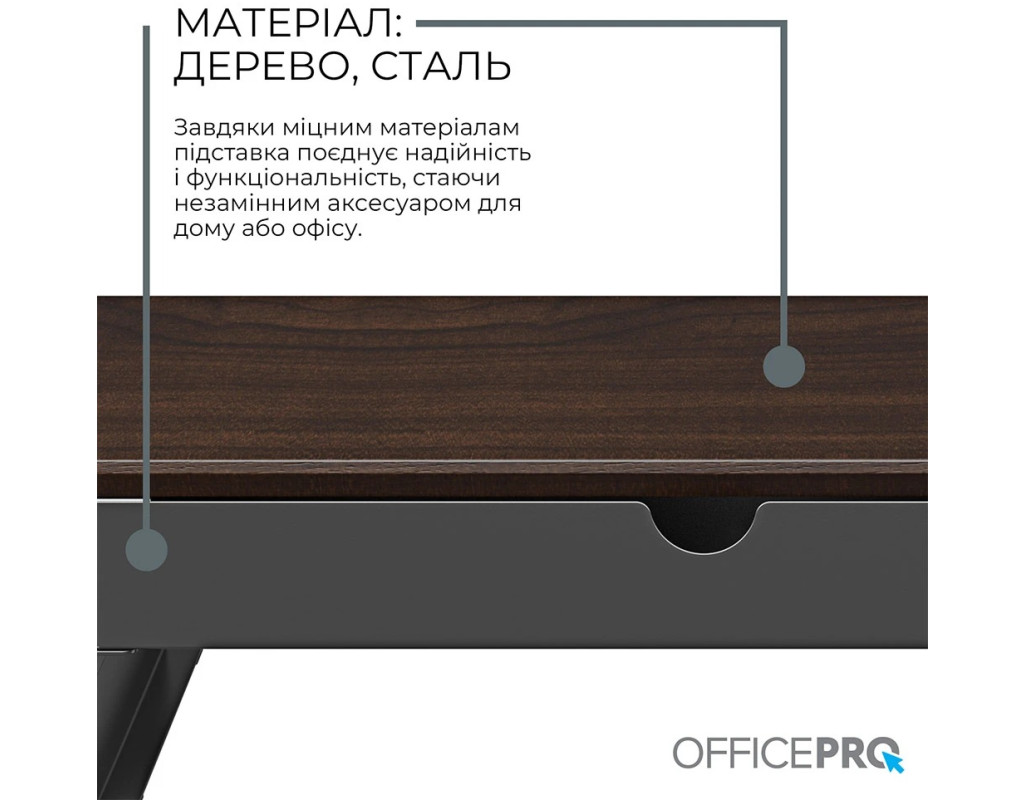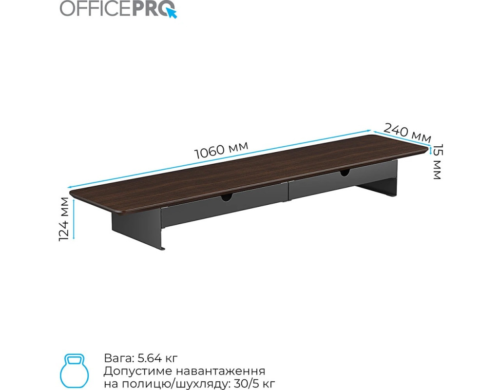 Основні переваги: - Ергономічне розташування монітора: Підставка піднімає монітор до рівня очей, що сприяє зменшенню напруги в шиї, плечах і спині, а також покращує поставу під час тривалого сидіння за столом. - Висока вантажопідйомність – до 30 кг: Конструкція витримує вагу навіть масивних моніторів або екранів із додатковим обладнанням. - Вбудовані висувні ящики: Функціональні шухляди допомагають зберігати канцелярію, кабелі, гаджети або дрібні офісні предмети, зберігаючи порядок на столі. - Міцні та зносостійкі матеріали: Виготовлена з якісних матеріалів, підставка забезпечує довговічність, стійкість і стабільність навіть при щоденному використанні. - Стильний і універсальний дизайн: Лаконічна форма і нейтральне оформлення дозволяють легко інтегрувати підставку в будь-який інтер’єр – від сучасного офісу до домашнього кабінету. Officepro MR164DW – це розумне поєднання практичності, ергономіки та надійності. Вона допоможе зробити робоче місце більш впорядкованим, зручним і сприятливим для продуктивної роботи. |