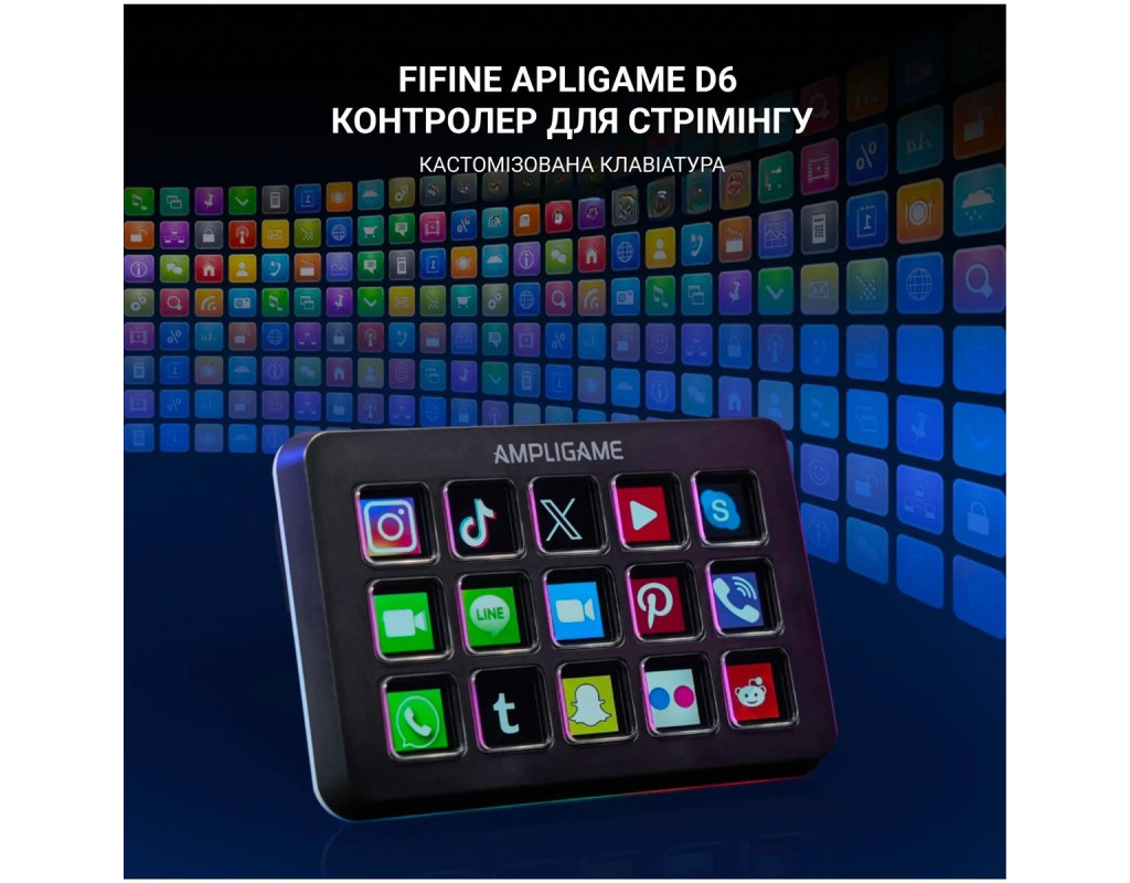 | Контролер Fifine D6 – це ідеальне рішення для професійного управління стрімінговими трансляціями та створення контенту. З п’ятнадцятьма налаштовуваними LCD-кнопками, цей пристрій пропонує неймовірну гнучкість і функціональність, які легко адаптуються до ваших індивідуальних потреб.