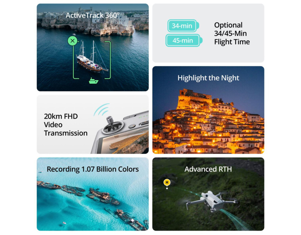 Пропонує найкращу в галузі якість зображення у надкомпактному корпусі, призначеному як для ентузіастів, так і для професіоналів. При вазі менше 249 г дрон знімає приголомшливе відео у форматі 4K зі швидкістю 60 кадрів на секунду та передає відео у форматі FHD на відстань 20 км за допомогою 12-мегапіксельного CMOS-сенсора. Його інтуїтивно зрозуміле керування та функції обходу перешкод, включаючи всеспрямоване виявлення перешкод та інтелектуальні режими польоту, роблять його доступним для широкого кола користувачів. Тим часом час автономної роботи і зарядний вузол DJI Mini 4 Pro значно покращилися в порівнянні з його попередником. Мандрівники, любителі пригод на природі, агенти з нерухомості та творці контенту – всі оцінять можливості аерофото- та відеозйомки. Знімайте, коли надходить натхнення. Mini 4 Pro важить менше 249 г і був розроблений для зручності в дорозі, а вага дрона означає, що немає необхідності проходити навчання чи реєстрацію у більшості країн та регіонів. З легкістю знімайте складніші деталі за допомогою камери Mini 4 Pro, оснащеної 1/1,3-дюймовою CMOS-матрицею з технологією Dual Native ISO Fusion, діафрагмою f/1,7 та пікселями 4-в-1 розміром 2,4 мкм. Більше деталей у світлих та темних ділянках із розширеним динамічним діапазоном означає безкомпромісні результати у кожному кадрі. Надайте яскравим сценам ту деталізацію, на яку вони заслуговують, за допомогою HDR 4K/60 кадрів в секунду і відео 4K/100 кадрів в секунду, а 10-бітний D-Log M і HLG допомагають захоплювати приголомшливий діапазон кольорів і забезпечують більшу гнучкість при редагуванні та публікації. Збережіть диво природи будь-якої миті. HDR 4K/60 кадрів в секунду дозволяє передати нюанси заходу сонця або сходу сонця в реалістичній якості. Занурюйте глядача у кожний кадр. За допомогою уповільненої зйомки з чіткістю 4K знімайте те, що відбувається на стежці, на пляжі або на задньому дворі зі швидкістю 100 кадрів на секунду. Покращений алгоритм шумоподавлення відео Night Shots Mini 4 Pro ефективно пригнічує шум і забезпечує чіткіші та чистіші кадри прямо з камери. Всеспрямоване виявлення перешкод робить Mini 4 Pro дуже безпечним. Завдяки чотирьом ширококутним датчикам огляду та парі датчиків спрямованого вниз огляду він виявляє перешкоди з усіх боків. Удосконалені системи допомоги пілоту (APAS) забезпечують додаткову безпеку за рахунок автоматичного гальмування та обходу під час польоту. Забудьте про проблеми з акумулятором та зосередьтеся на творчості за допомогою інтелектуальної льотної батареї Mini 4 Pro. Насолоджуйтесь польотом до 34 хвилин або оновіть його до Intelligent Flight Battery Plus, щоб насолодитися максимальним тривалим польотом — 45 хвилин. Mini 4 Pro оснащений передачею відео DJI O4. Насолоджуйтесь надчутливим керуванням та плавною прямою трансляцією у форматі FHD 1080p/60 кадрів за секунду з відстані до 20 км. Mini 4 Pro пропонує три простих способи отримати потрібні знімки: Spotlight, Point Interest та новий революційний ActiveTrack 360 ° з розширеними можливостями відстеження об'єктів. Проведіть по контуру коліщатка трасування, щоб зробити безперервні кінематографічні знімки. Завдяки всеспрямованому виявленню перешкод обходити перешкоди та досягати більш плавного та стабільного відстеження для досягнення результатів професійного рівня неймовірно просто. Цей легкий та простий у використанні пульт дистанційного керування оснащений вбудованою пр