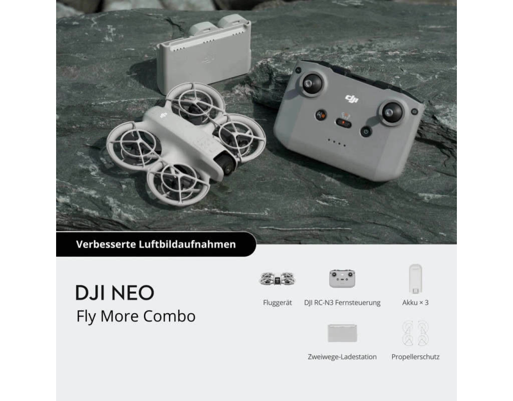 DJI Neo Fly More Combo with RC-N3: максимальна свобода польотів DJI Neo Fly More Combo with RC-N3 — це ідеальне рішення для тих, хто прагне максимальної ефективності та комфорту в управлінні дроном. Завдяки передовим технологіям DJI Neo забезпечує стабільний та плавний політ, відмінну якість відео і розширені можливості зйомки. Комплект Fly More Combo пропонує додаткові аксесуари, які значно розширюють можливості пристрою. Основні переваги DJI Neo Fly More Combo