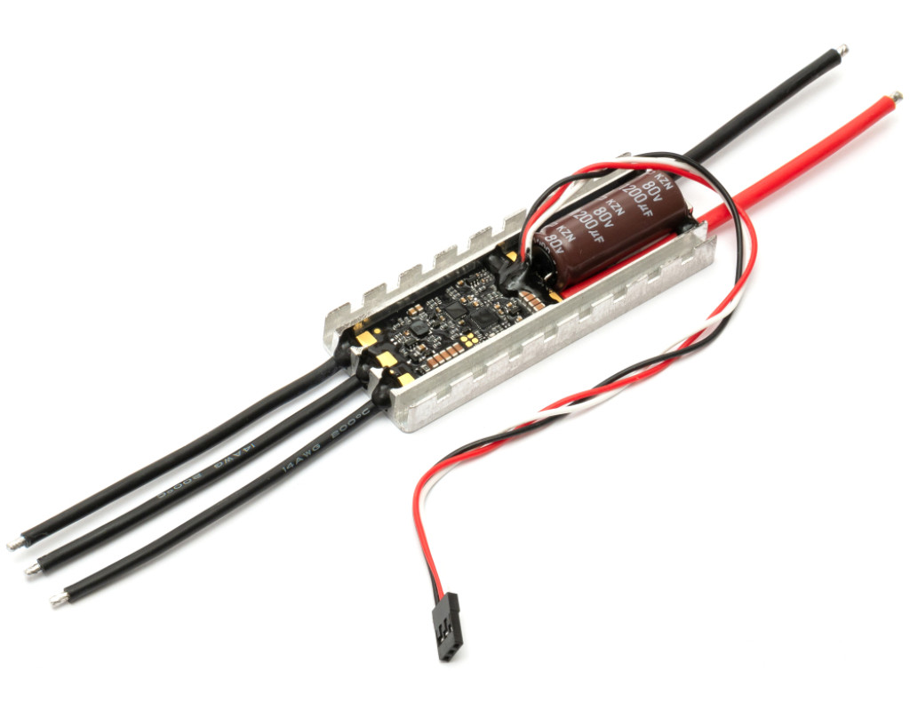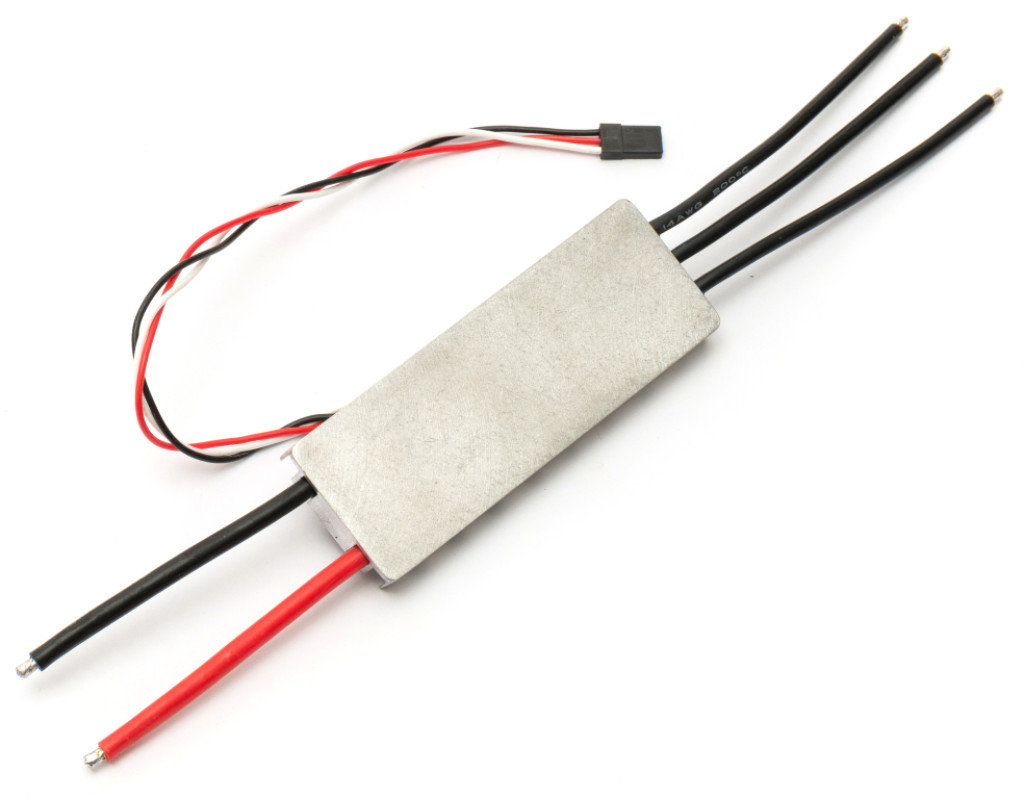 Вхідна напруга живлення — 4–12S (16–50В) Піковий струм до 10 секунд — 100A Довготривалий робочий струм при 100% рівні сигналу на вході керування та розміщенні регулятора в повітряному потоці зі швидкістю не менше 3 м/с — 80A Прошивка — AM32 Протокол — PWM, DShot300/600, Bidirectional DShot300/600 Вихід телеметрії — Так, KISS 24A Датчик струму — Так Рівень захисту — IP67 (залито герметиком) Розміри — 99 мм × 35,5 мм × 17,5 мм Вага — 83 г |