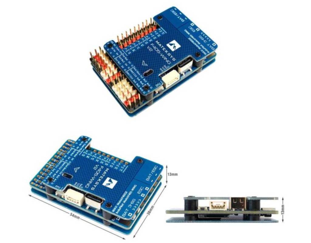 1x Matek Flight Controller FC F405-WING V2 1x 20 см кабель JST-GH-4P до JST-GH-4P для порту I2C Виводи Dupont 2,54 (плата постачається розпаяною) |