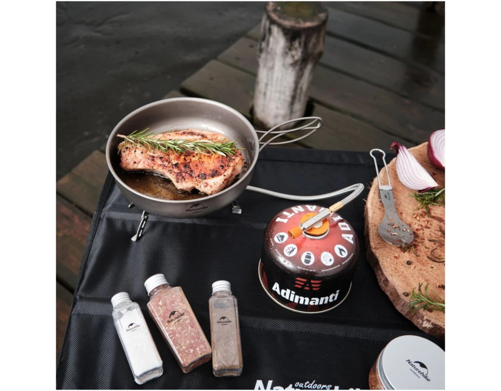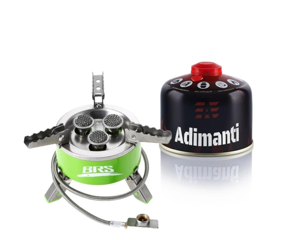 Купівля набором вигідніша за придбання предметів окремо: ви отримуєте повністю сумісні елементи, заощаджуєте на сумарній вартості та одразу закриваєте базові завдання на польовій кухні однією покупкою. Триконфорковий пальник BRS-73 формує широкий, стабільний вогонь потужністю 4200 Вт. 1 л води закипає ~3 хв 50 с. Модель із зовнішнім підпалом працює на скрапленому газі із середньою витратою палива 324 г/год. Корпус виконаний з алюмінієвого сплаву з елементами з міді та нержавіючої сталі. Конструкція важить 480 г, має діаметр ~17.6 см та висоту 12.5 см, що забезпечує хорошу автономність при збереженні високої теплопродуктивності. Всередині балона Adimanti знаходиться всесезонна газова суміш пропану, бутану та ізобутану в збалансованих пропорціях 25/39/36%. Це поєднання забезпечує впевнене випаровування на холоді завдяки нижчим температурам кипіння компонентів та стабільне горіння за звичайної погоди. Місткість балона становить 460 мл при вазі 230 г. Балон оснащений різьбовим клапаном SBN-188 із захисним ковпачком і виконаний за стандартом EN 417, тому сумісний з більшістю різьбових портативних пальників, обігрівачів та плит. Характеристики: