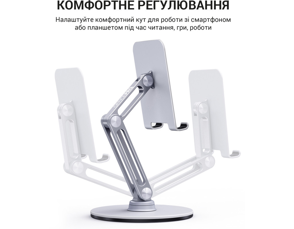 Надійна алюмінієва конструкція забезпечує довговічність і стійкість, а кут нахилу, що регулюється, дозволяє зручно налаштувати екран для оптимального перегляду. Обертання на 360 градусів забезпечить повний обхідний доступ до пристрою. Складна конструкція та компактний розмір забезпечать легке зберігання та перенесення, а силіконові протиковзкі накладки гарантують стабільну фіксацію на будь-якій поверхні. Отримайте комфорт та надійність разом із цим власником – ідеальним супутником для вашого мобільного життя. |