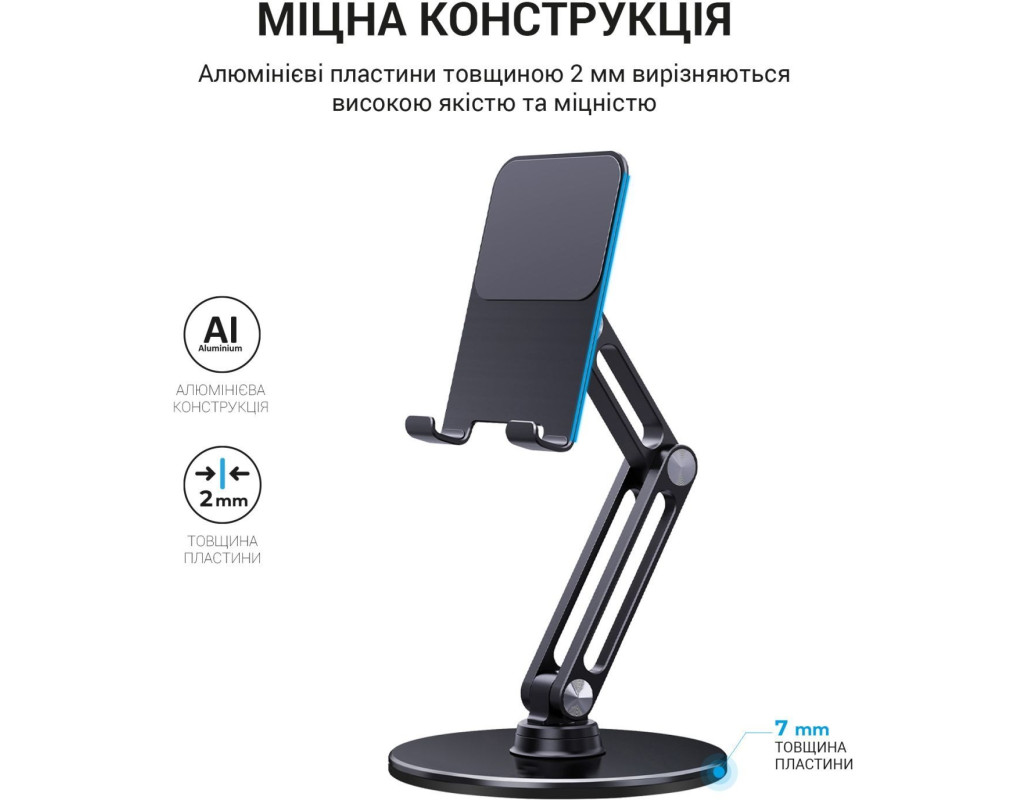 Надійна алюмінієва конструкція забезпечує довговічність і стійкість, а кут нахилу, що регулюється, дозволяє зручно налаштувати екран для оптимального перегляду. Обертання на 360 градусів забезпечить повний обхідний доступ до пристрою. Складна конструкція та компактний розмір забезпечать легке зберігання та перенесення, а силіконові протиковзкі накладки гарантують стабільну фіксацію на будь-якій поверхні. Отримайте комфорт та надійність разом із цим власником – ідеальним супутником для вашого мобільного життя. |