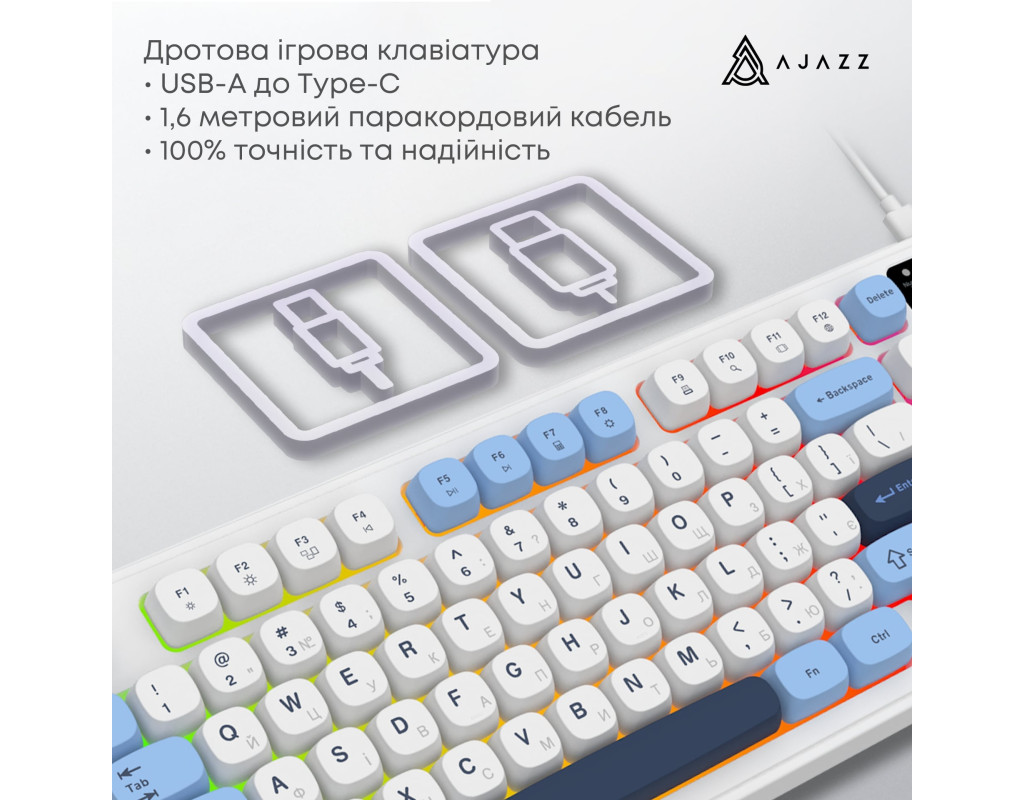 | Ajazz AF98 — універсальна дротова мембранна клавіатура, що поєднує практичний форм-фактор, тиху роботу та сучасний дизайн.