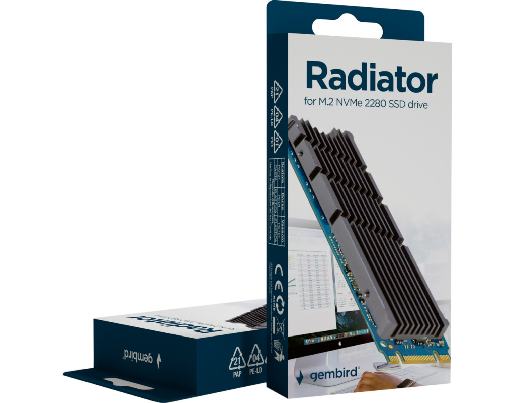 Алюмінієвий радіатор Gembird EE2280-R-01 для накопичувача M.2 (NGFF) розміру 2280 |