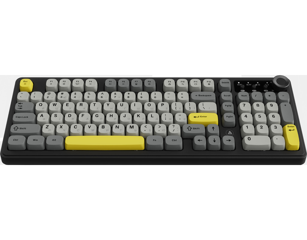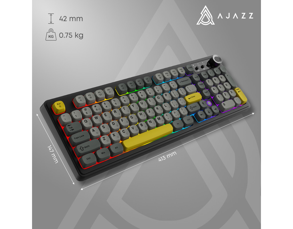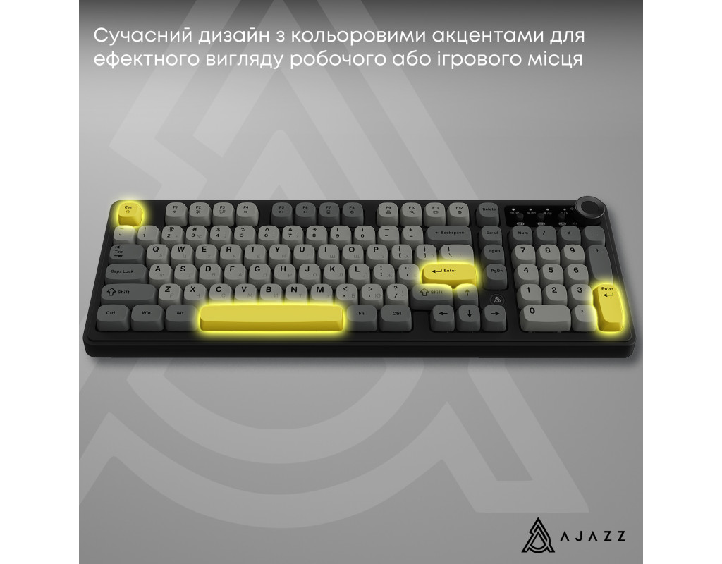 | Ajazz AF98 PLUS — універсальна бездротова мембранна клавіатура, що поєднує практичний форм-фактор, тиху роботу та розширені можливості підключення.