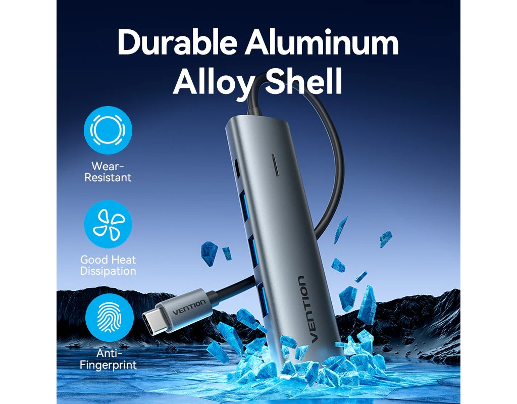 Хаб USB 3.0 Type-C -> 4xUSB 3.0/1xUSB-C, 5Gbps, Black Vention