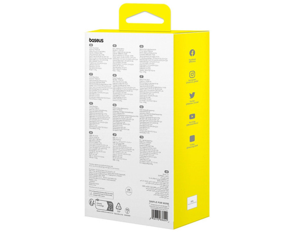 Ємність - 20000 mAh, вихідний струм - 2.4 A, розмір - 123 x 74.6 x 32.8 мм, вага - 360 г