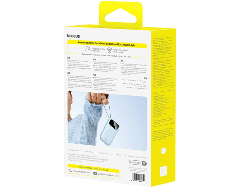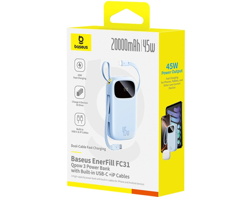 | УМБ Baseus 20000mAh EnerFill FC31 45W PD,QC,USB-A,USB-C In/Out, built-in USB-C/Lightning cable Blue |