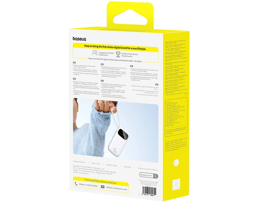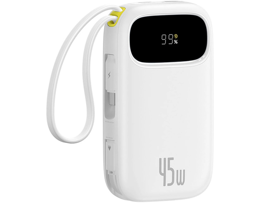 | УМБ Baseus 20000mAh EnerFill FC31 45W PD,QC,USB-A,USB-C In/Out, built-in USB-C/Lightning cable White |