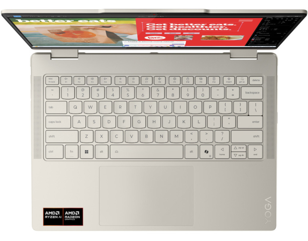 Ноутбук-перетворювач Yoga 7 2-in-1 14AKP10 — ідеальний вибір для тих, хто шукає універсальність у поєднанні з високою продуктивністю. Завдяки обертовому на 360° шарніру та сенсорному дисплею, пристрій миттєво переходить з режиму ноутбука в планшет, забезпечуючи комфортну роботу в будь-якому сценарії. Поєднання інноваційних рішень і потужного "заліза" дозволяє з легкістю реалізовувати як робочі, так і творчі задуми. Висока точність кольорів (100% DCI-P3) та підтримка технології Dolby Vision гарантують вражаючу якість зображення з насиченими відтінками та кінематографічними ефектами. Максимум продуктивності — без компромісів У серці Yoga 7 — сучасний процесор AMD Ryzen AI. Його розширений кеш і обчислювальна потужність дозволяють швидко впоратися навіть із ресурсоємними завданнями. Крім того, чип має інтегровані функції Ryzen AI з обчислювальною потужністю до 50 TOPS, що прискорює задачі штучного інтелекту та допомагає ефективніше використовувати ресурси системи. Це дає змогу зекономити заряд батареї та покращити загальну продуктивність — особливо важливо для користувачів у русі. Технології, що надихають Yoga 7 отримав оперативну пам’ять LPDDR5x-7500, припаяну до плати для забезпечення максимальної пропускної здатності й стабільної багатозадачності. А швидкий SSD забезпечує миттєвий доступ до даних і стрімкий запуск системи. Один із головних акцентів — 14-дюймовий OLED-дисплей із роздільною здатністю WUXGA (1920x1200), підтримкою Dolby Vision та сертифікацією DisplayHDR True Black 500. Він відображає глибокі чорні кольори та забезпечує яскраву, реалістичну картинку. Матове покриття зменшує відблиски, а підтримка 10-точкового мультитачу забезпечує комфортну та інтуїтивну взаємодію. За виведення графіки відповідає інтегрована AMD Radeon — чудовий вибір для обробки зображень, перегляду відео та легкого геймінгу. Надійне з’єднання й тривала автономність Батарея на 70 Вт·год забезпечує тривалу роботу без підзарядки. А завдяки технології Rapid Charge Express, всього 15 хвилин зарядки вистачить на до 3 годин використання. Модуль Wi-Fi 7 (802.11be 2x2) гарантує високу швидкість передачі даних та стабільне з’єднання навіть у завантажених мережах, а Bluetooth 5.4 забезпечує безпроблемне підключення аксесуарів. Корпус з анодованого алюмінію не тільки виглядає стильно, але й додає надійності — Yoga 7 готовий до інтенсивного щоденного використання вдома, в офісі або в дорозі. |