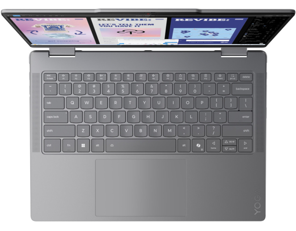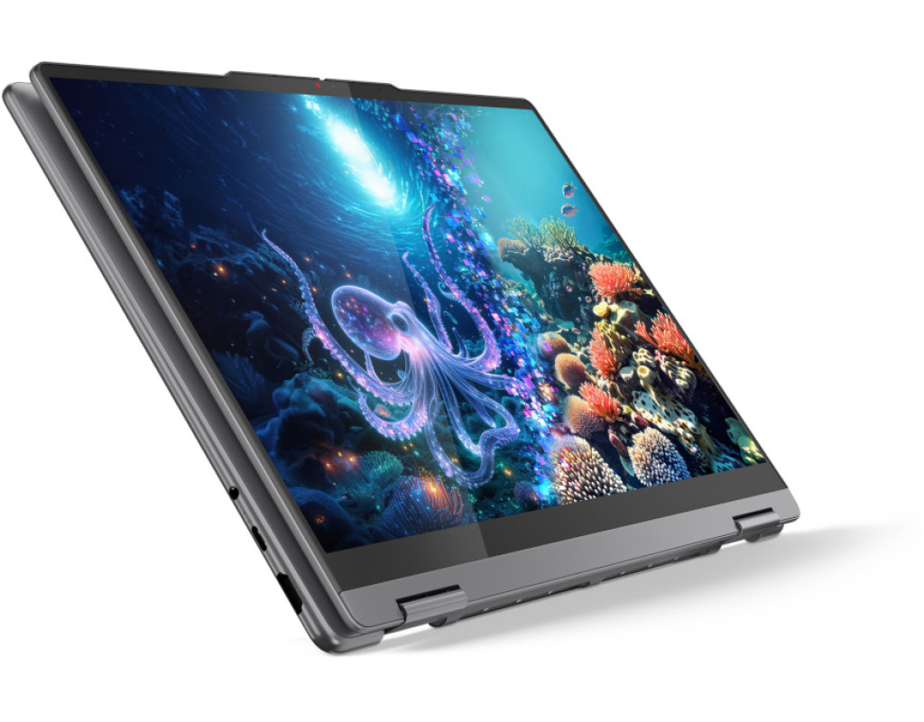 Yoga 7 2-in-1 14ILL10 — це ноутбук, який адаптується до вашого темпу життя. Завдяки шарніру з поворотом на 360°, він миттєво трансформується з ноутбука в планшет, відкриваючи простір для роботи, розваг або творчості — будь-де, будь-коли. Сенсорний дисплей у парі зі стилусом Yoga Pen забезпечує інтуїтивну взаємодію, точне введення та зручне керування. А витончений алюмінієвий корпус вагою лише 1,38 кг дарує не лише мобільність, а й преміальний вигляд. Yoga 7 створений для тих, хто цінує свободу і гнучкість у кожному рішенні. Потужність нового покоління З новітнім процесором Intel Core Ultra цей ноутбук забезпечує відмінну продуктивність для щоденних справ і складних завдань. Завдяки Intel AI Boost ноутбук використовує можливості штучного інтелекту для оптимізації продуктивності та зниження енергоспоживання — саме тоді, коли це потрібно. Якість зображення, яка захоплює 14-дюймовий OLED-дисплей із роздільною здатністю WQXGA+ (2880x1800) дарує неймовірну глибину кольорів і чіткість деталей. Яскравість 500 ніт, підтримка Dolby Vision та знижене випромінювання синього світла роблять користування комфортним навіть під час тривалих сесій. Свобода без компромісів Акумулятор ємністю 70 Вт·год дозволяє працювати до 16 годин без підзарядки. Технологія Rapid Charge Express дає змогу отримати до 3 годин автономності всього за 15 хвилин. А завдяки інтелектуальному управлінню енергією ноутбук максимально ефективно витрачає заряд. Завжди на зв’язку — з Wi-Fi 7 і Bluetooth 5.4 ви отримаєте стабільне з’єднання навіть у перевантажених мережах. Yoga 7 також вирізняється надійністю: сертифікація за військовим стандартом MIL-STD-810H гарантує витривалість, а шторка для вебкамери забезпечує додатковий рівень приватності. |
