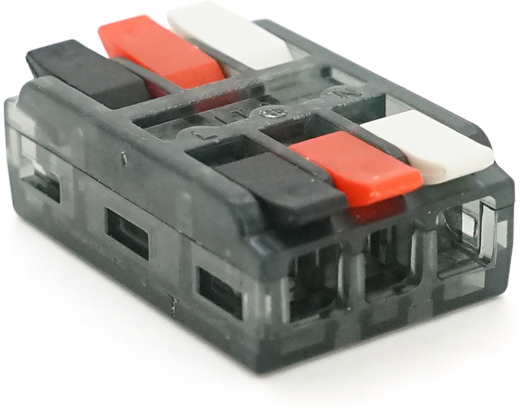 Клема з натискними затискачами 3-провідна LT-3, 3-pin, 250V, 32A, 0.5-2.5mm2, 19*30*11mm, сіра